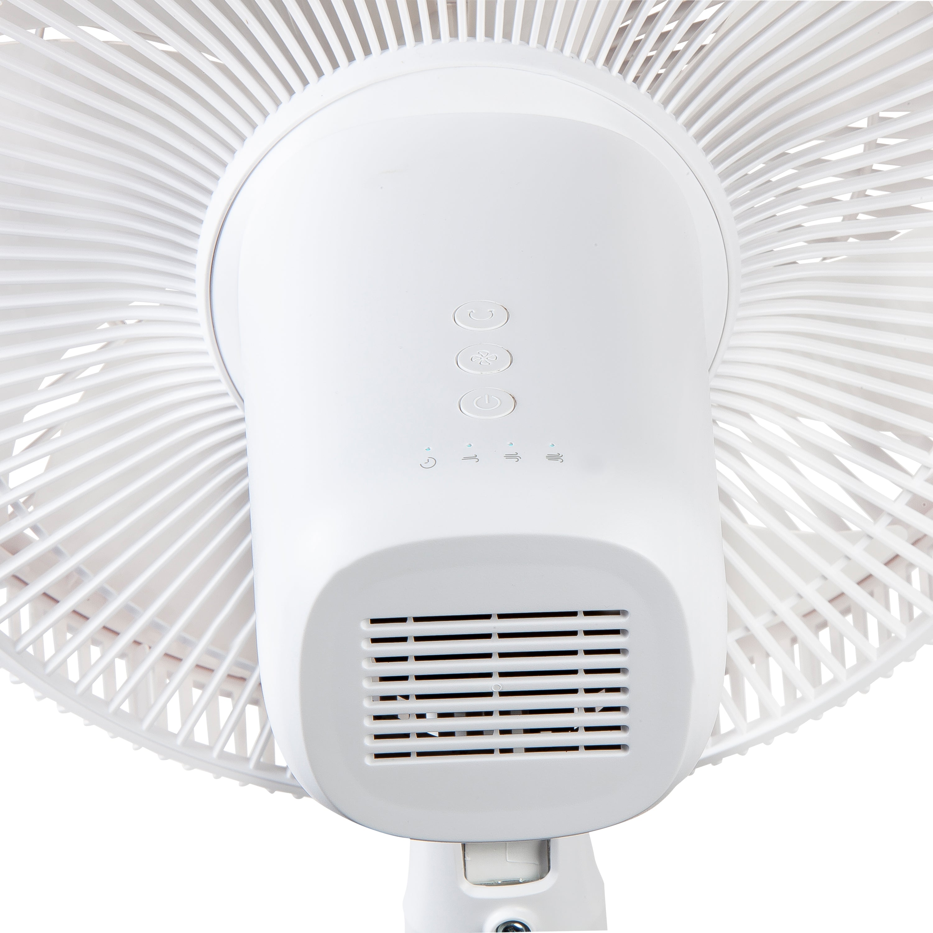 De bediening van deze ventilator is heel makkelijk. De ventilator is voorzien van 3 snelheidsstanden, die je op het apparaat zelf of via de afstandsbediening kunt bedienen. Tevens kun je de timerfunctie instellen tot 4 uur. Heb je de ventilator per ongeluk aan laten staan? Na 12 uur schakelt hij automatisch uit. Daarnaast is de ventilator gemaakt met 90° oscillatie en zwenkfunctie.