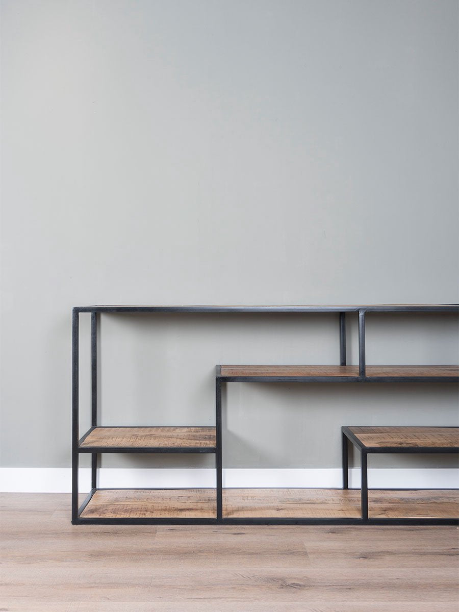 Het warme mangohout geeft de kast een natuurlijke, tijdloze uitstraling, terwijl het metalen frame zorgt voor een industriële en stoere touch. Dankzij de ruime vakken biedt de kast veelzijdige opbergmogelijkheden en is deze perfect voor boeken, decoraties of dagelijkse items.