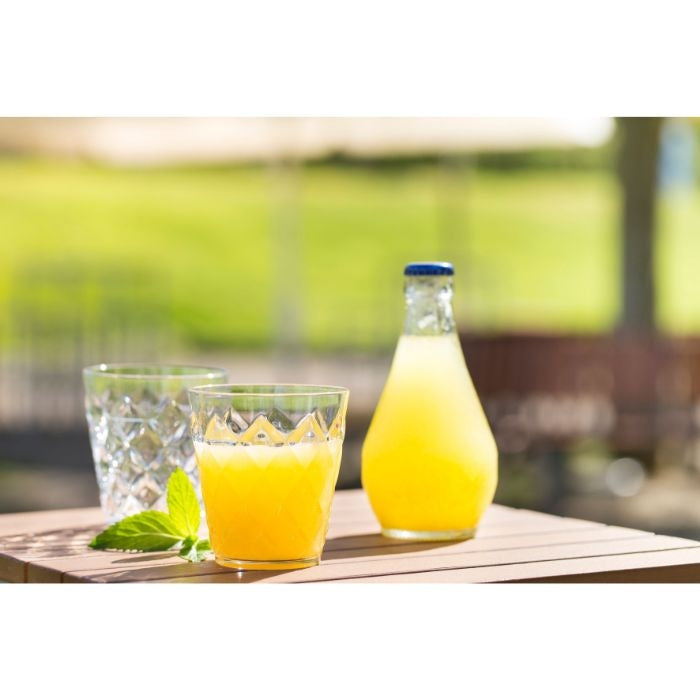 Ga je een lekkere koude Icetea in de tuin drinken of heb je liever een heerlijk verkoelend glas water? Dit drink je natuurlijk met het drinkglas uit de Crystal-serie van Koziol! Dit glas isoleert goed, waardoor de inhoud lang op temperatuur blijft en je lang van jouw drankje kan genieten! Verder is het drinkglas 100% recyclebaar, waardoor je ook nog eens aan het milieu denkt tijdens jouw drankje. Als jouw drankje op is, kan je het glas eenvoudig reinigen in de vaatwasser! Ben je toch op zoek naar een andere kleur? Dit drinkglas is ook verkrijgbaar in het grijs, groen en transparant. Verder is het glas ook te bestellen met een inhoud van 450ml!