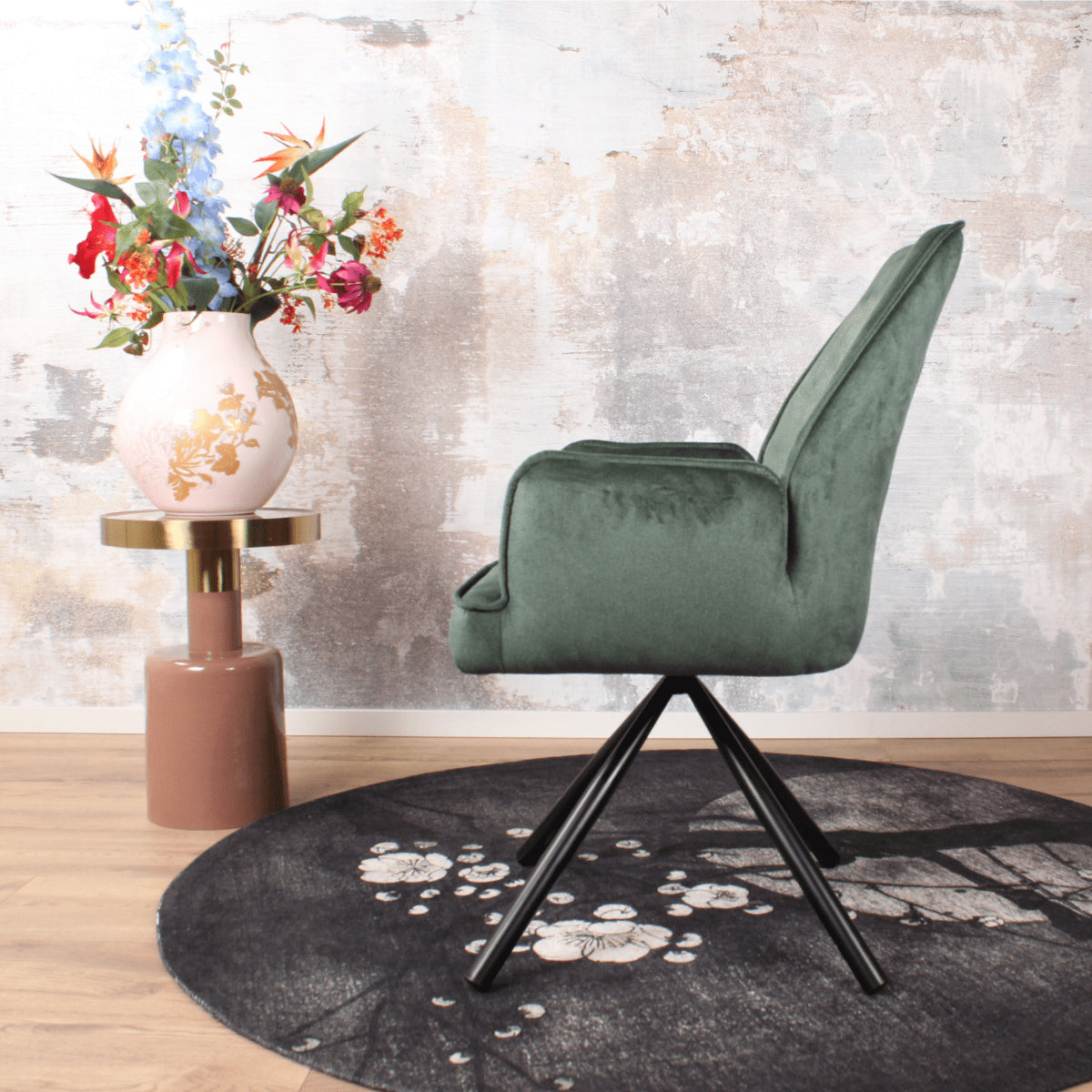 DS4U Giovanna eetkamerstoel velours donkergroen