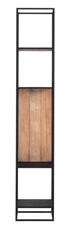 Deze stijlvolle boekenkast is voorzien van 4 open vakken. De kast is gemaakt van gerecycled teakhout en zwart gelakt metaal. Deze combinatie geeft de kast een industriële look.