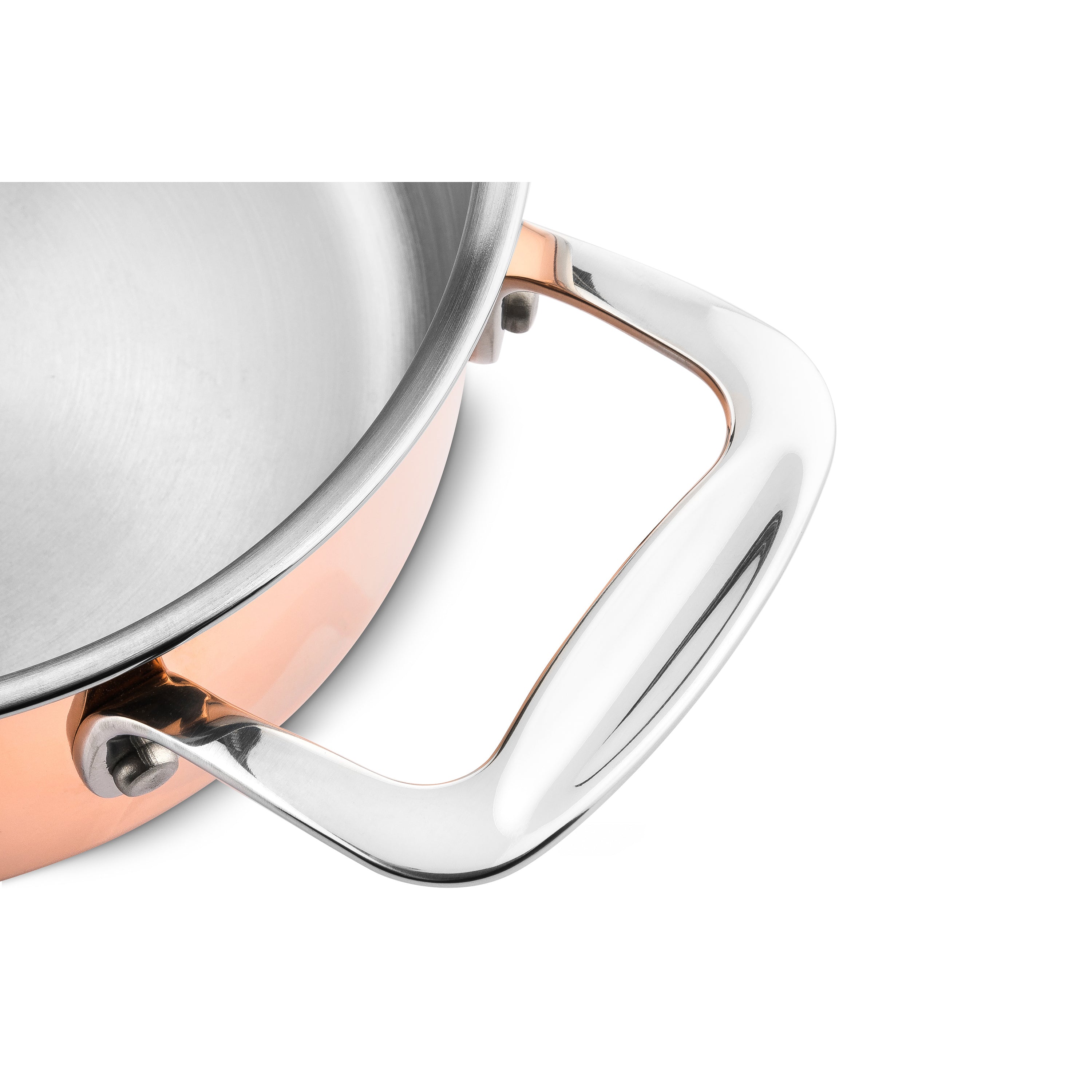 DUCQ pannen zijn niet alleen fraai in design maar ook van uitstekende kwaliteit. De pannen zijn opgebouwd uit 3 lagen: puur koper aan de buitenzijde, roestvrijstaal (RVS) aan de binnenzijde en een aluminium tussenlaag.