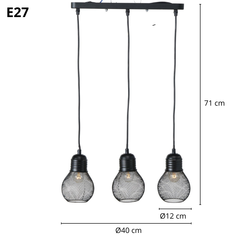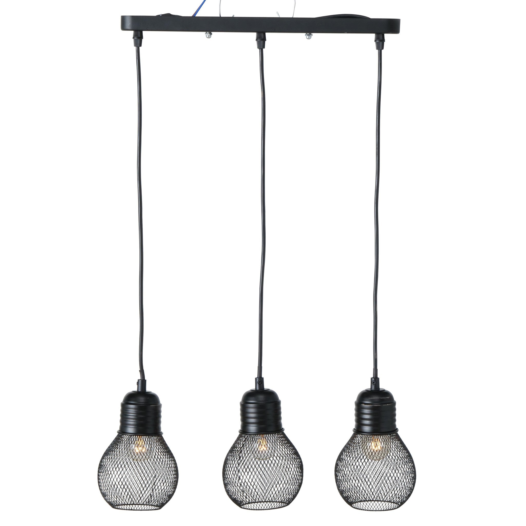 Stijlvolle hanglamp in de kleur zwart. Hij is volledig gemaakt van metaal en vormgegeven in de stijl industrieel. De hanglamp is een combinatie van 3 lampen en daarom ideaal voor boven een eettafel. De fitting is tot slot de meest gangbare maat E27. Unieke productkenmerken