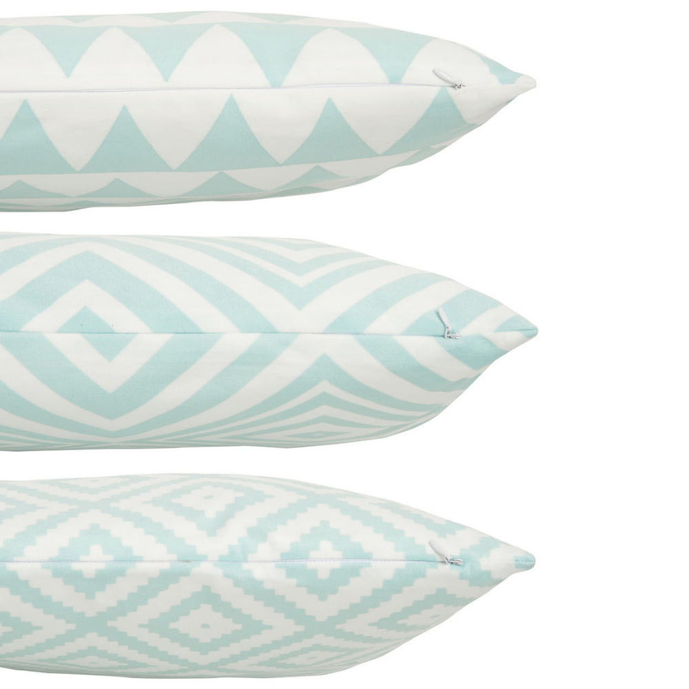 Mooi sierkussen in de kleuren blauw wit. Het is een set van 3 kussens die inclusief vulling worden geleverd. Ze zijn volledig aan 2 kanten bedrukt met een stijlvol strepen patroon. De ritssluiting van de kussenhoes zit aan de zijkant, hierdoor kun je de sierkussens aan 2 kanten gebruiken en heb je geen last van de rits. Verder zijn ze eenvoudig te wassen want de vulling kan er ook uit gehaald worden. De kussens zijn stevig en zacht. De dikte is 8 centimeter. Unieke productkenmerken