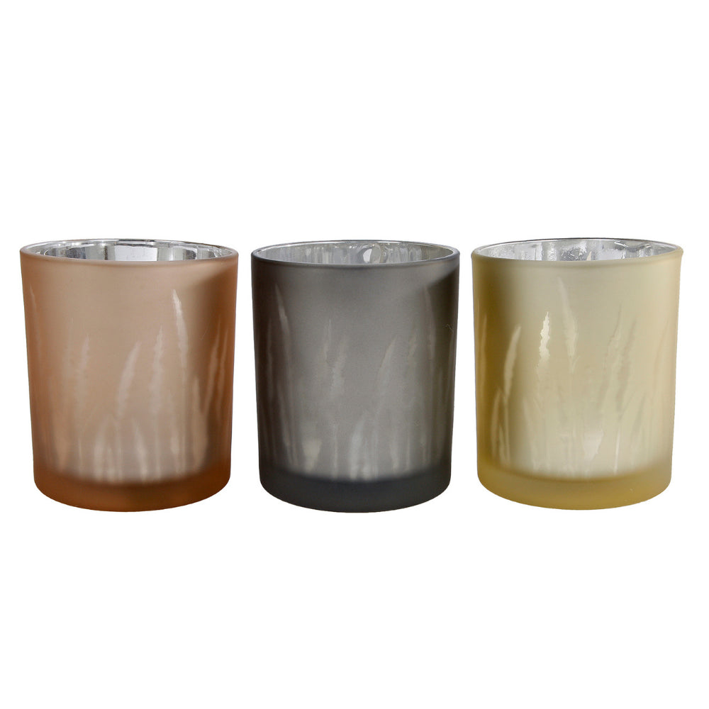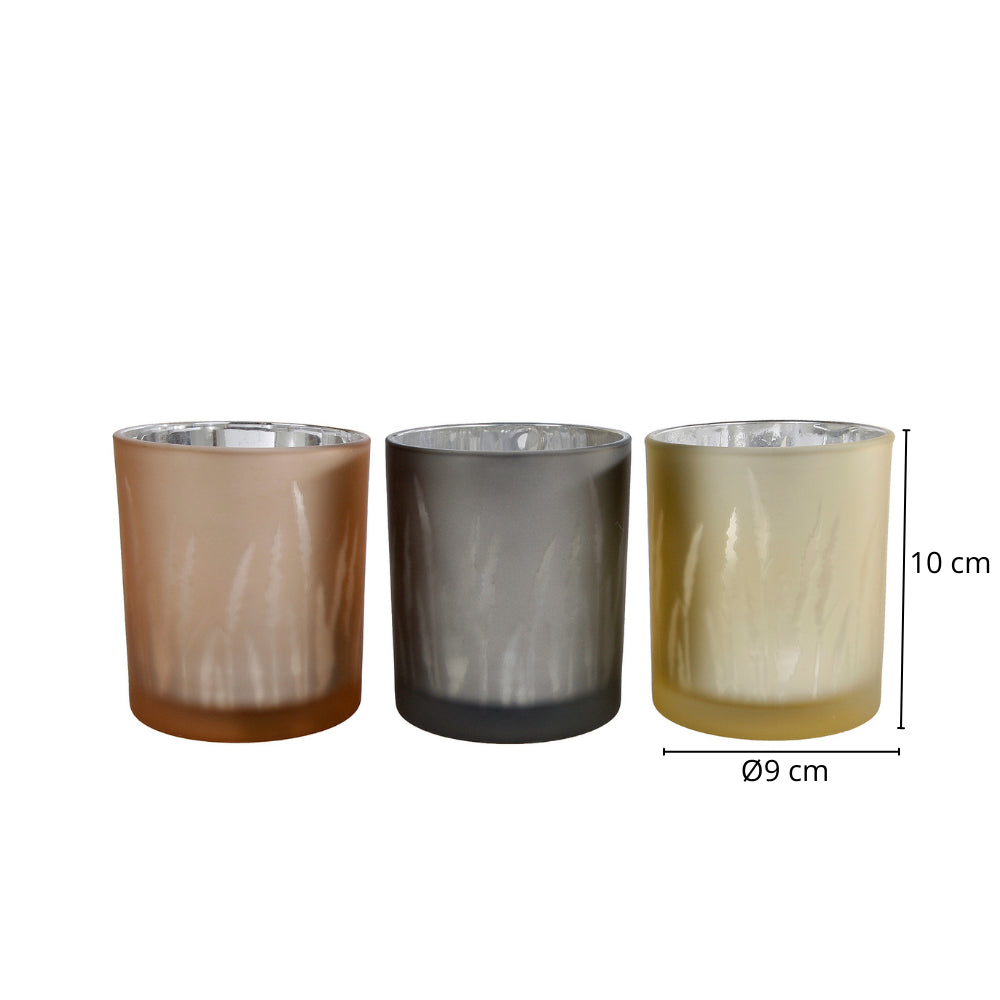 Dulaire Waxinelichthouder Glas Bruin, Zwart En Beige 3 st. - 10 cm