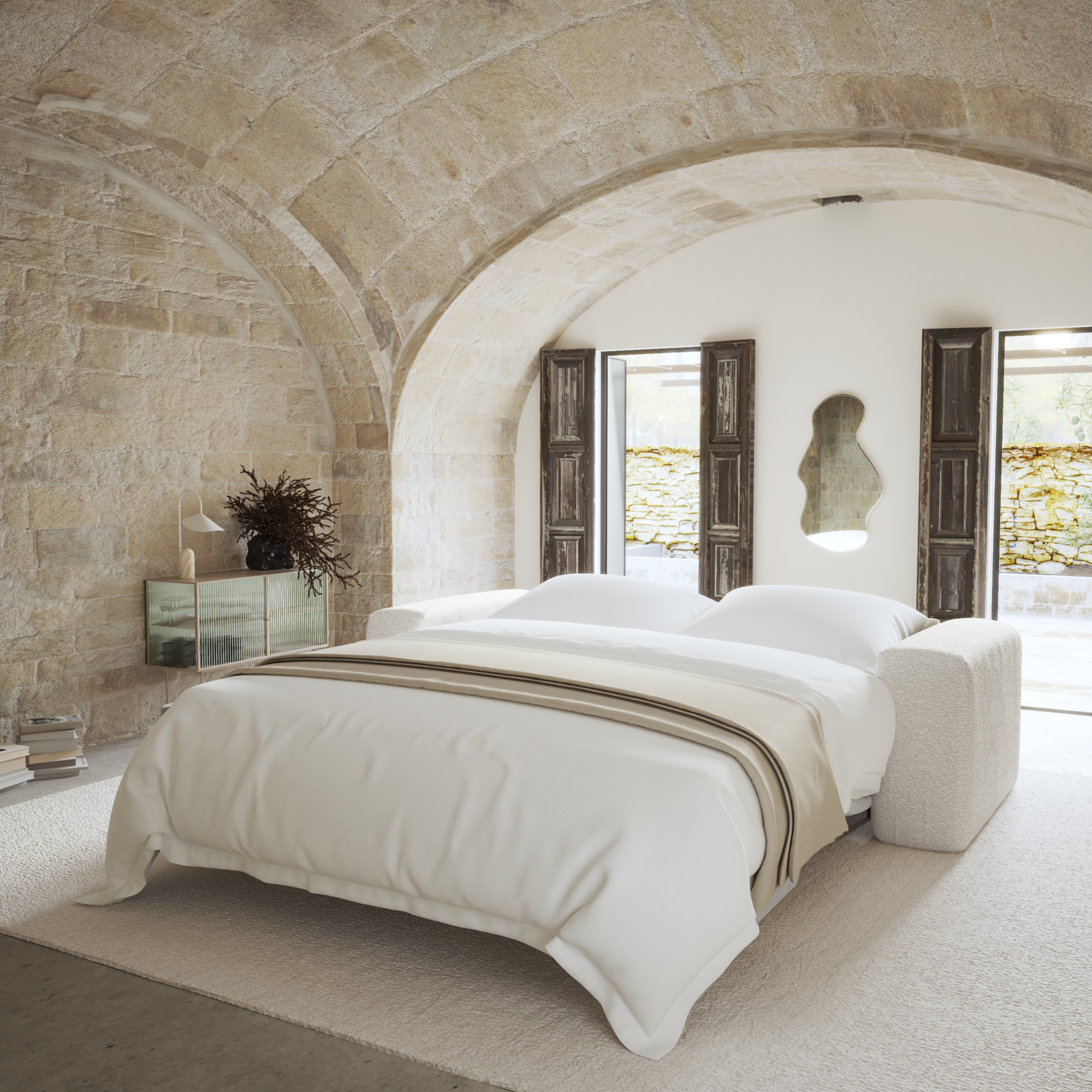 Dunlopillo 160 cm Express converteerbare bank in crème bouclé
