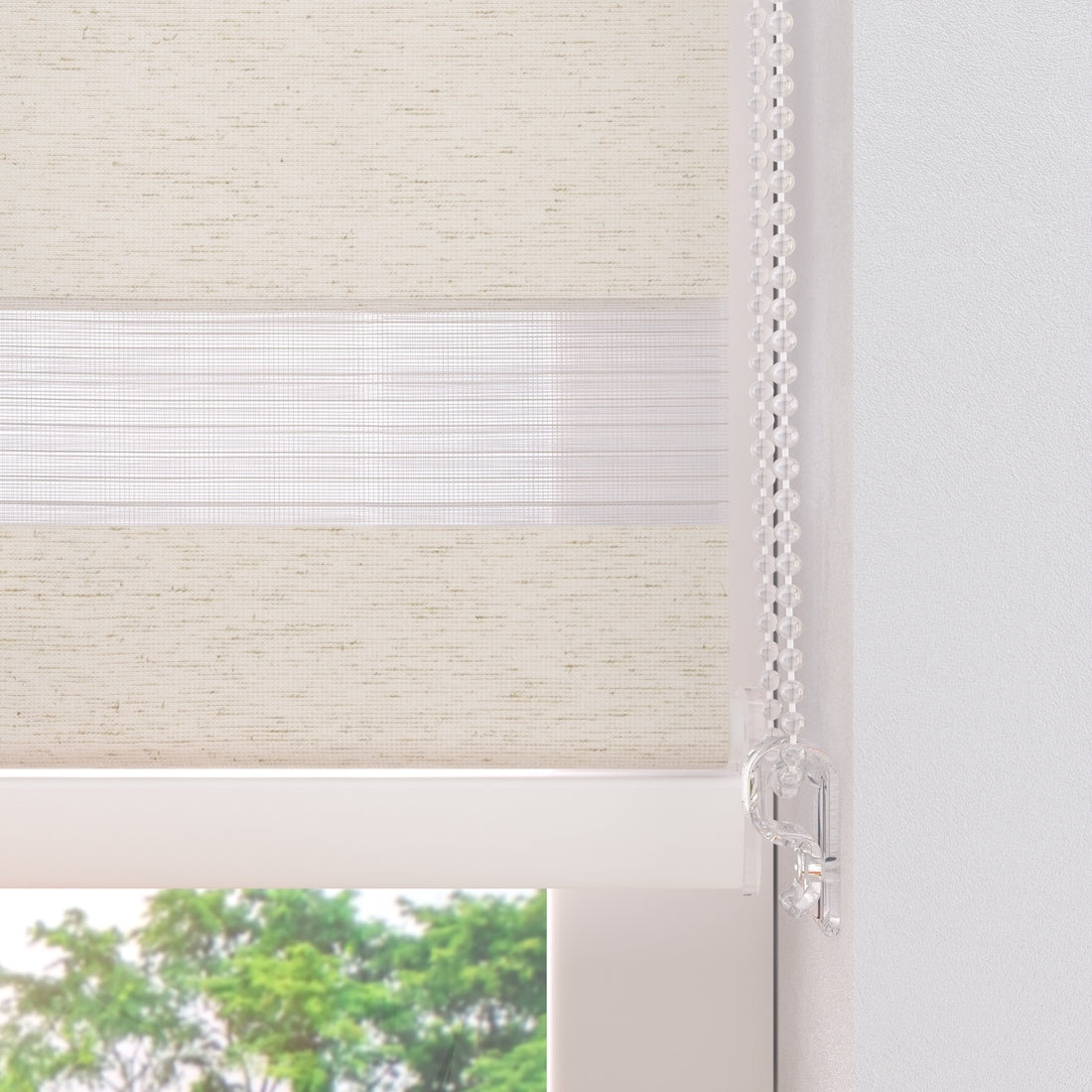 De stof bestaat uit lichtdoorlatende en transparante banen van 100% polyester. Hierdoor is het duo rolgordijn ook geschikt voor vochtige ruimtes en eenvoudig af te nemen met een lichtvochtige doek. De luxe cassette is van aluminium en de bedieningsketting is van kunststof.