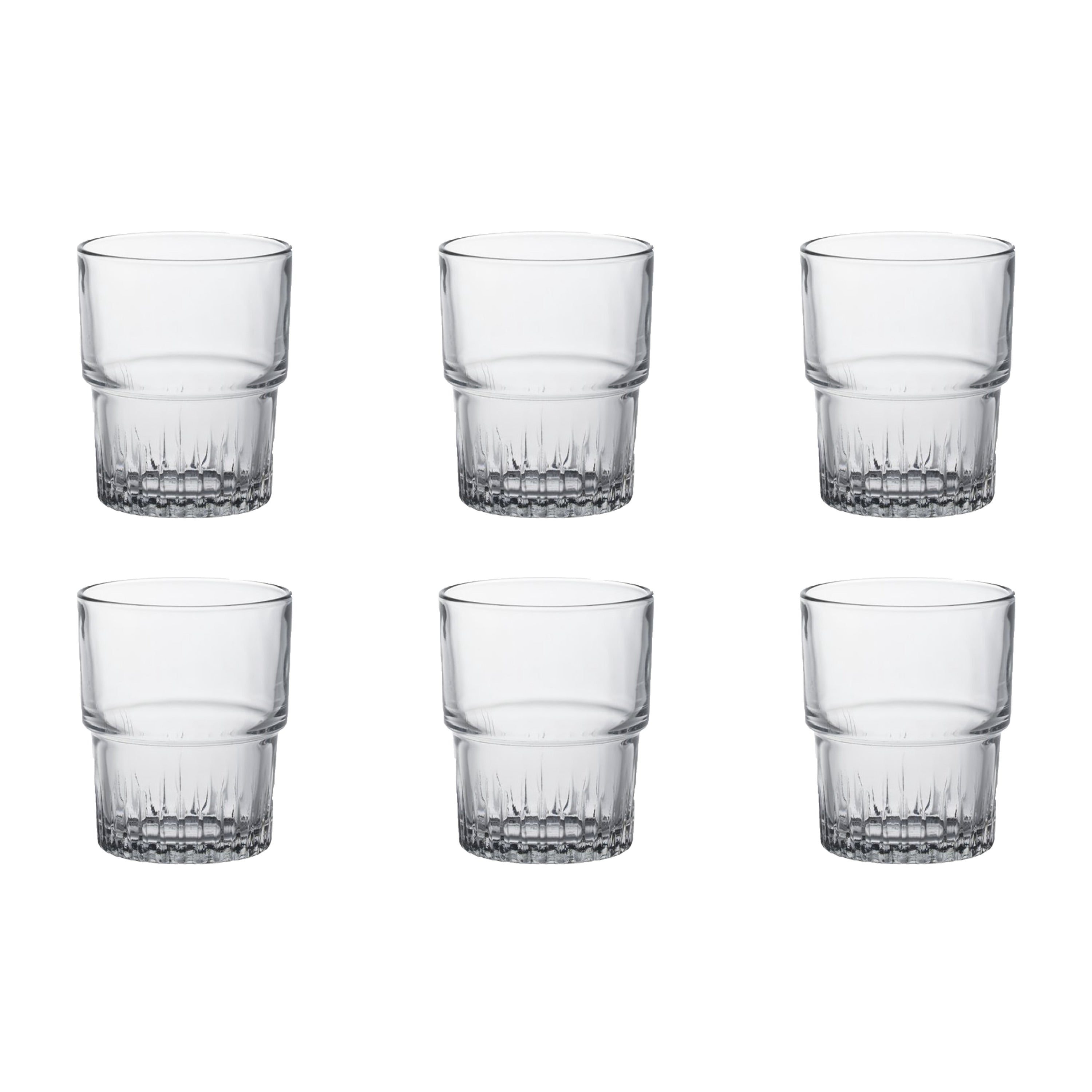 Belangrijkste kenmerken: · Product: 6 waterglazen · Inhoudsmaat: 20 cl · Materiaal: Gehard glas · Kleur: Transparant · Vaatwasmachinebestendig: Ja · Magnetronbestendig: Ja, tot 120°C · Vriezerbestendig: Ja, tot -20°C Gehard glas Het merk Duralex laat zich kenmerken door haar producten gemaakt van gehard glas. Gehard glas wordt op een opvallende wijze geproduceerd. Als eerst wordt het glas verhit tot een temperatuur van ongeveer 700°C. Na deze verhitting wordt het glas in een snel tempo gekoeld, waardoor het glas weerstand kan bieden aan thermische schokken van 120°C tot -20°C. Gehard glas is 2,5 keer zo sterk dan gegloeid glas en is te vergelijken met de sterkte van een autovoorruit. Gehard glas is dus het perfecte materiaal voor glazen, koppen en schalen. Bovendien is gehard glas zeer geschikt voor gebruik van de magnetron- en vriezer.
