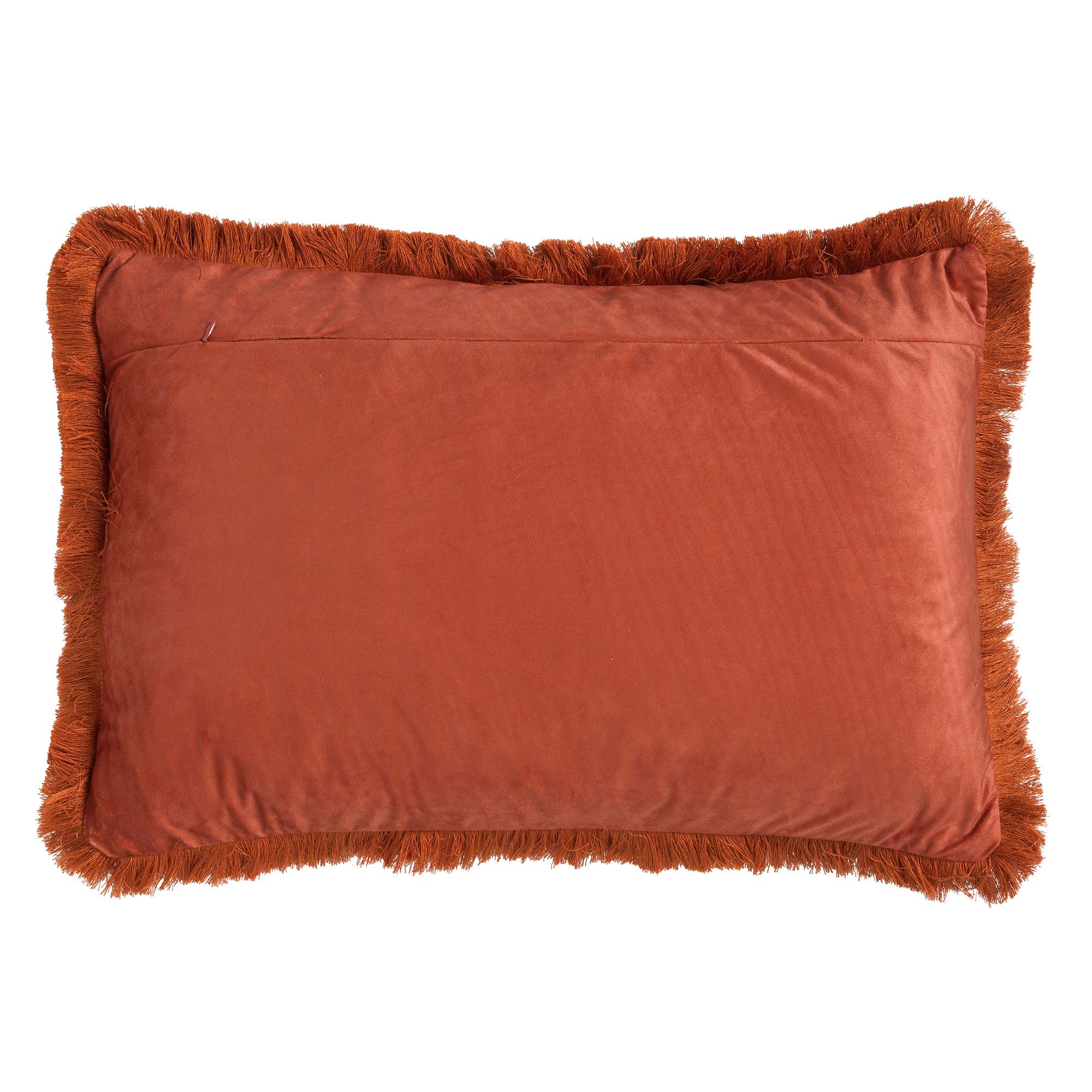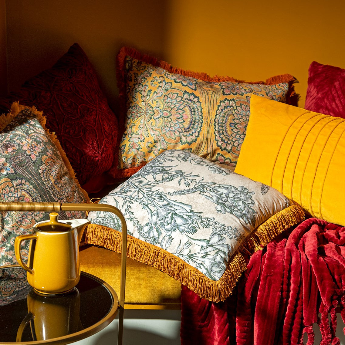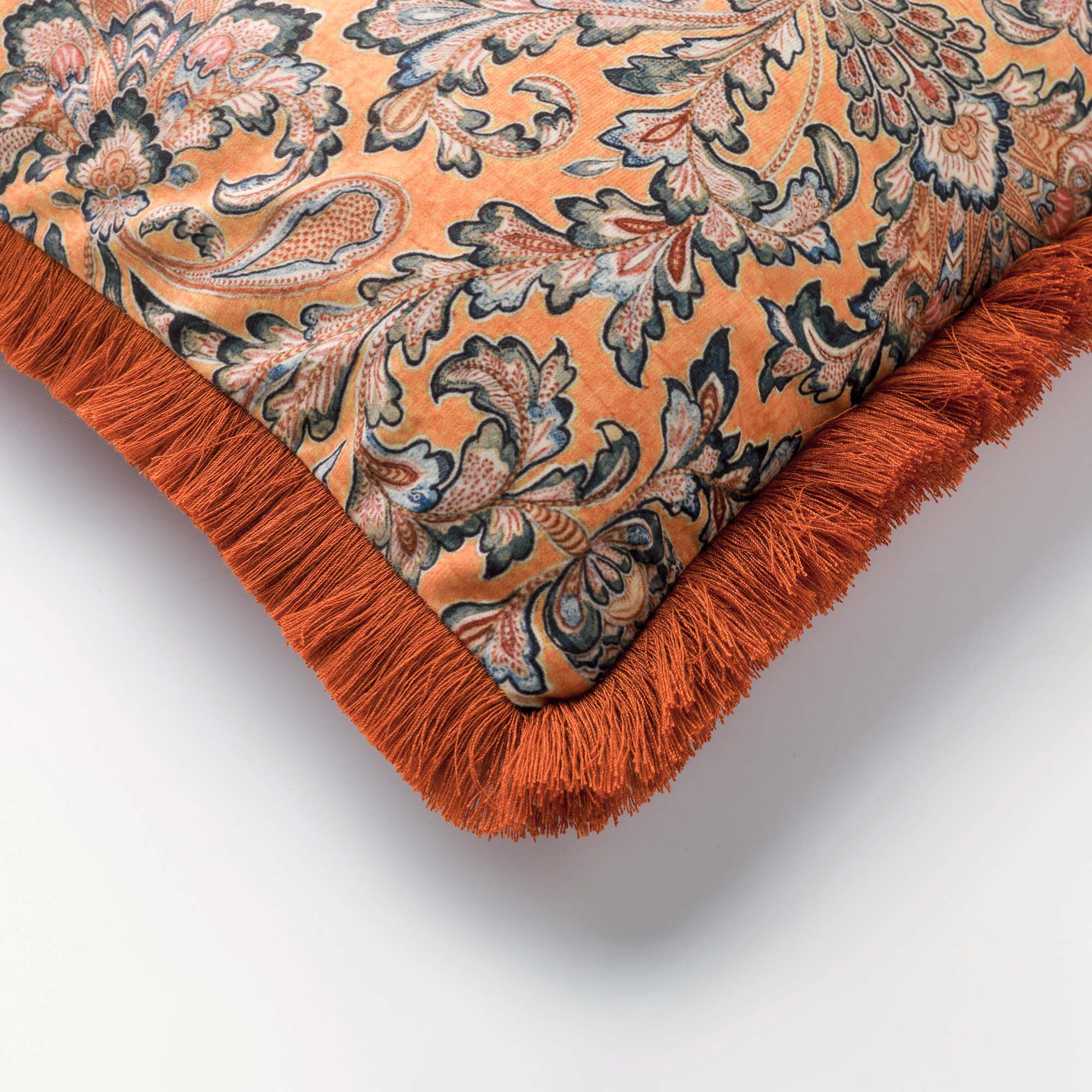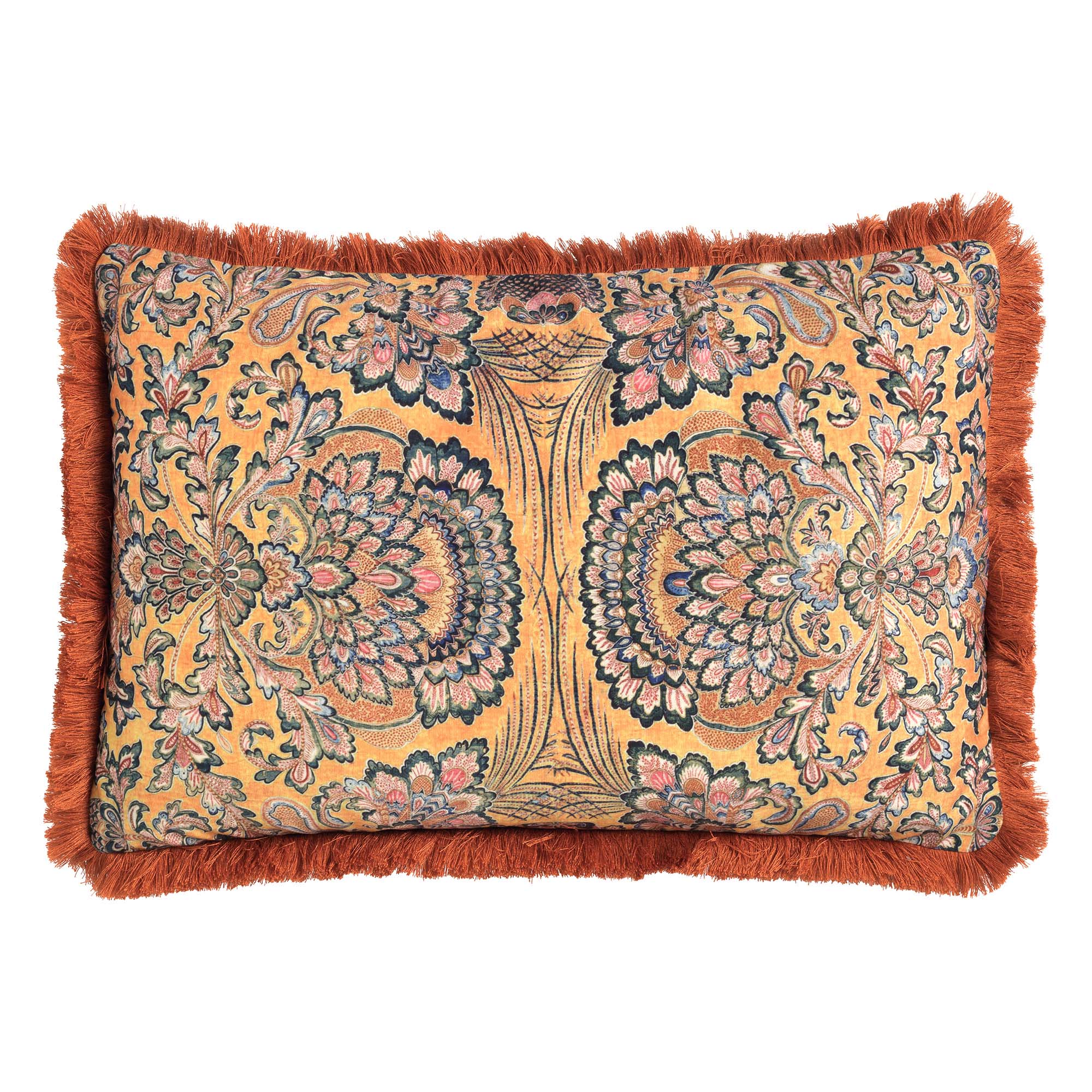 - Het kussen heeft een barok patroon met franjes aan de zijkanten