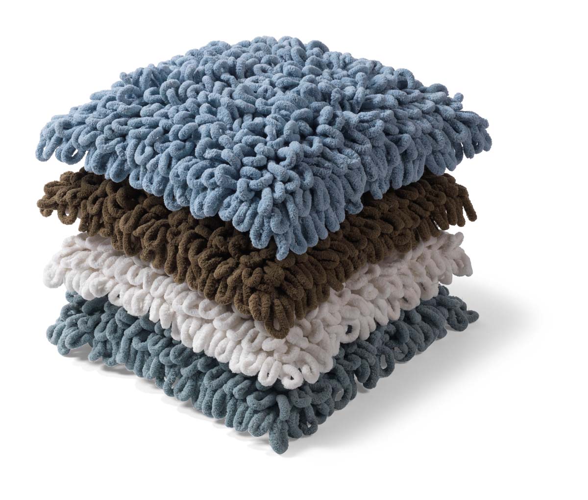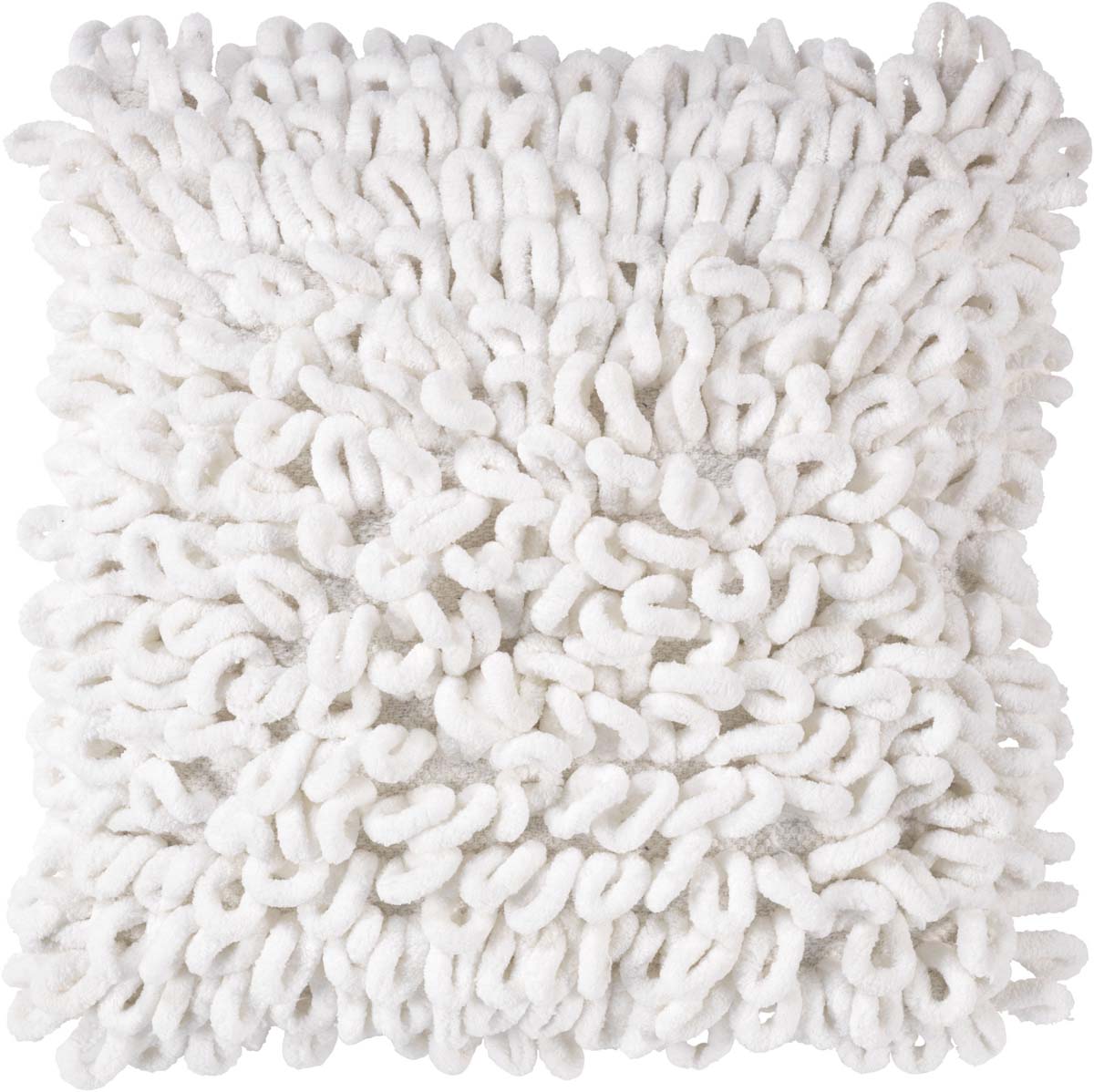 - Het kussen is gemaakt van grote zachte lussen