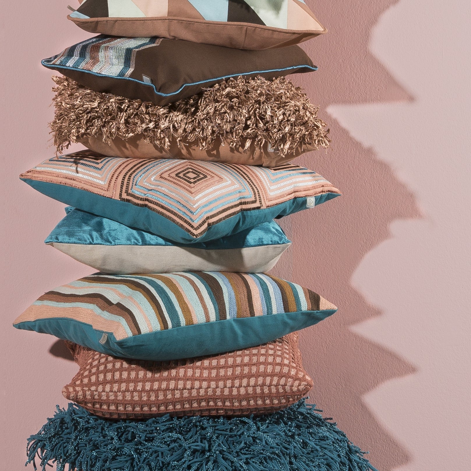 Dutch Decor - SARITA - Kussenhoes geborduurd 45x45 cm - petrol - roze
