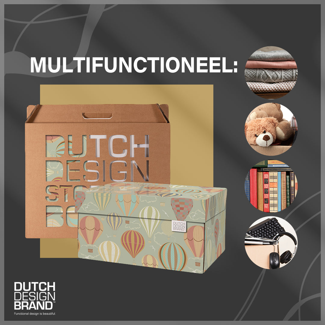 Opruimen wordt een feest met de Dutch Design Storage Box. Maak kennis met het nieuwste product van Dutch Design Brand: de Dutch Design Storage Box. Een doos om spullen in op bergen saai? Niet die van Dutch Design Brand! Ons merk geeft deze manier van opbergen een compleet nieuwe betekenis. De Dutch Design Storage Boxen zijn niet alleen praktisch, maar ook blikvangers in huis. Een handige én stijlvolle accessoire die de complete look en feel van de ruimte opfleurt.