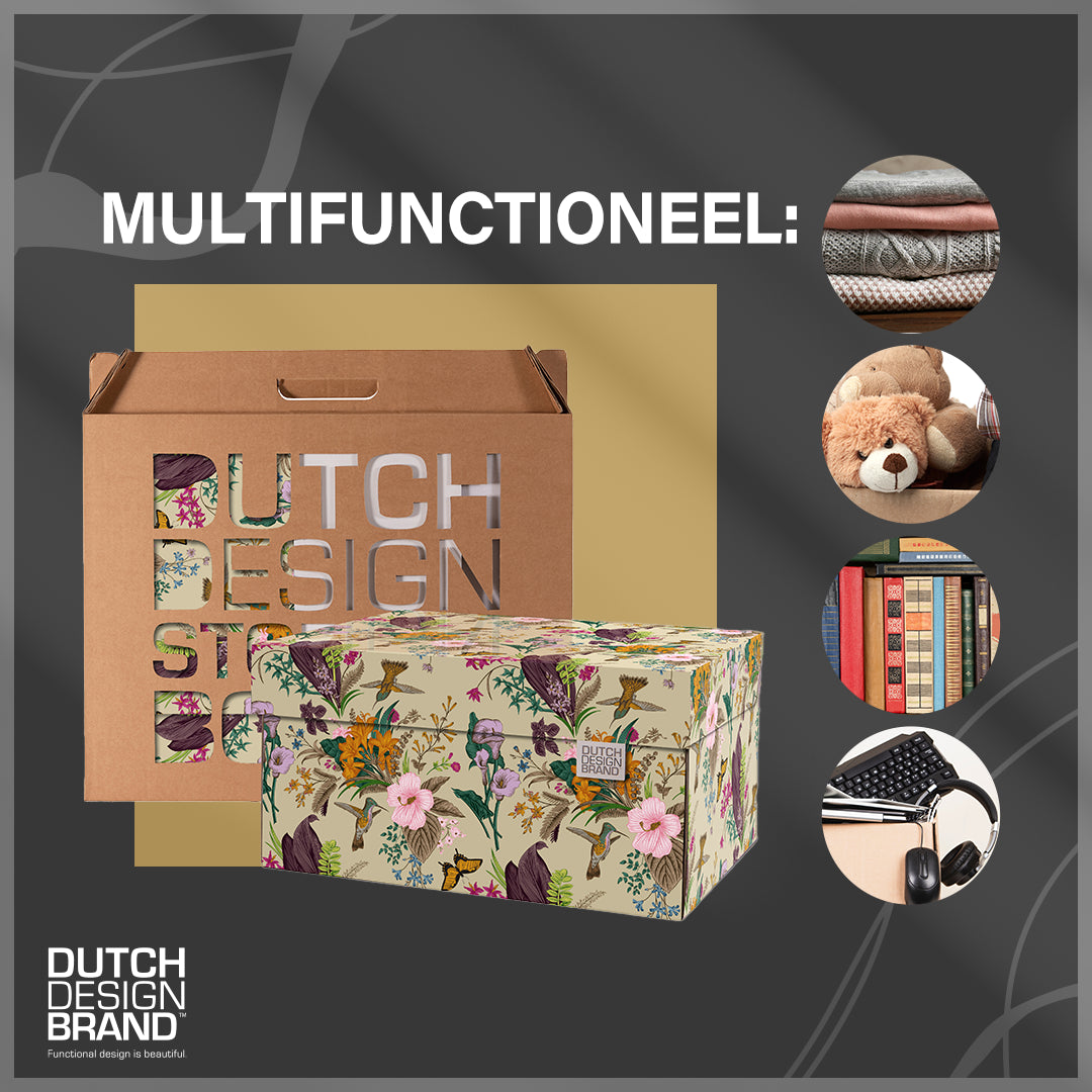 Opruimen wordt een feest met de Dutch Design Storage Box. Maak kennis met het nieuwste product van Dutch Design Brand: de Dutch Design Storage Box. Een doos om spullen in op bergen saai? Niet die van Dutch Design Brand! Ons merk geeft deze manier van opbergen een compleet nieuwe betekenis. De Dutch Design Storage Boxen zijn niet alleen praktisch, maar ook blikvangers in huis. Een handige én stijlvolle accessoire die de complete look en feel van de ruimte opfleurt.