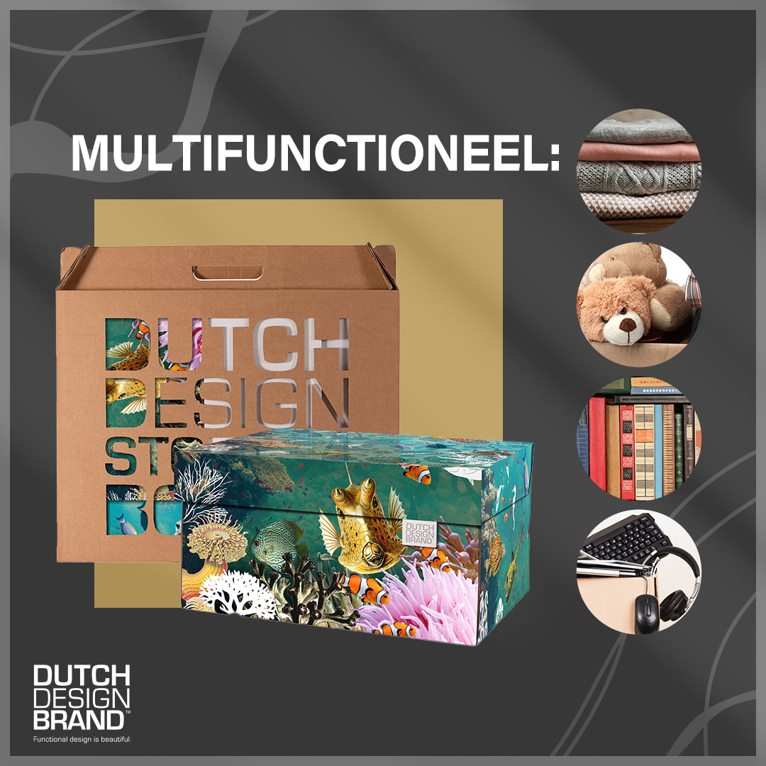 Opruimen wordt een feest met de Dutch Design Storage Box. Maak kennis met het nieuwste product van Dutch Design Brand: de Dutch Design Storage Box. Een doos om spullen in op bergen saai? Niet die van Dutch Design Brand! Ons merk geeft deze manier van opbergen een compleet nieuwe betekenis. De Dutch Design Storage Boxen zijn niet alleen praktisch, maar ook blikvangers in huis. Een handige én stijlvolle accessoire die de complete look en feel van de ruimte opfleurt.