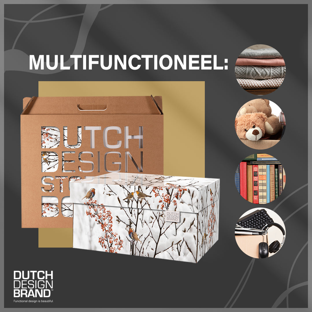 Opruimen wordt een feest met de Dutch Design Storage Box. Maak kennis met het nieuwste product van Dutch Design Brand: de Dutch Design Storage Box. Een doos om spullen in op bergen saai? Niet die van Dutch Design Brand! Ons merk geeft deze manier van opbergen een compleet nieuwe betekenis. De Dutch Design Storage Boxen zijn niet alleen praktisch, maar ook blikvangers in huis. Een handige én stijlvolle accessoire die de complete look en feel van de ruimte opfleurt.