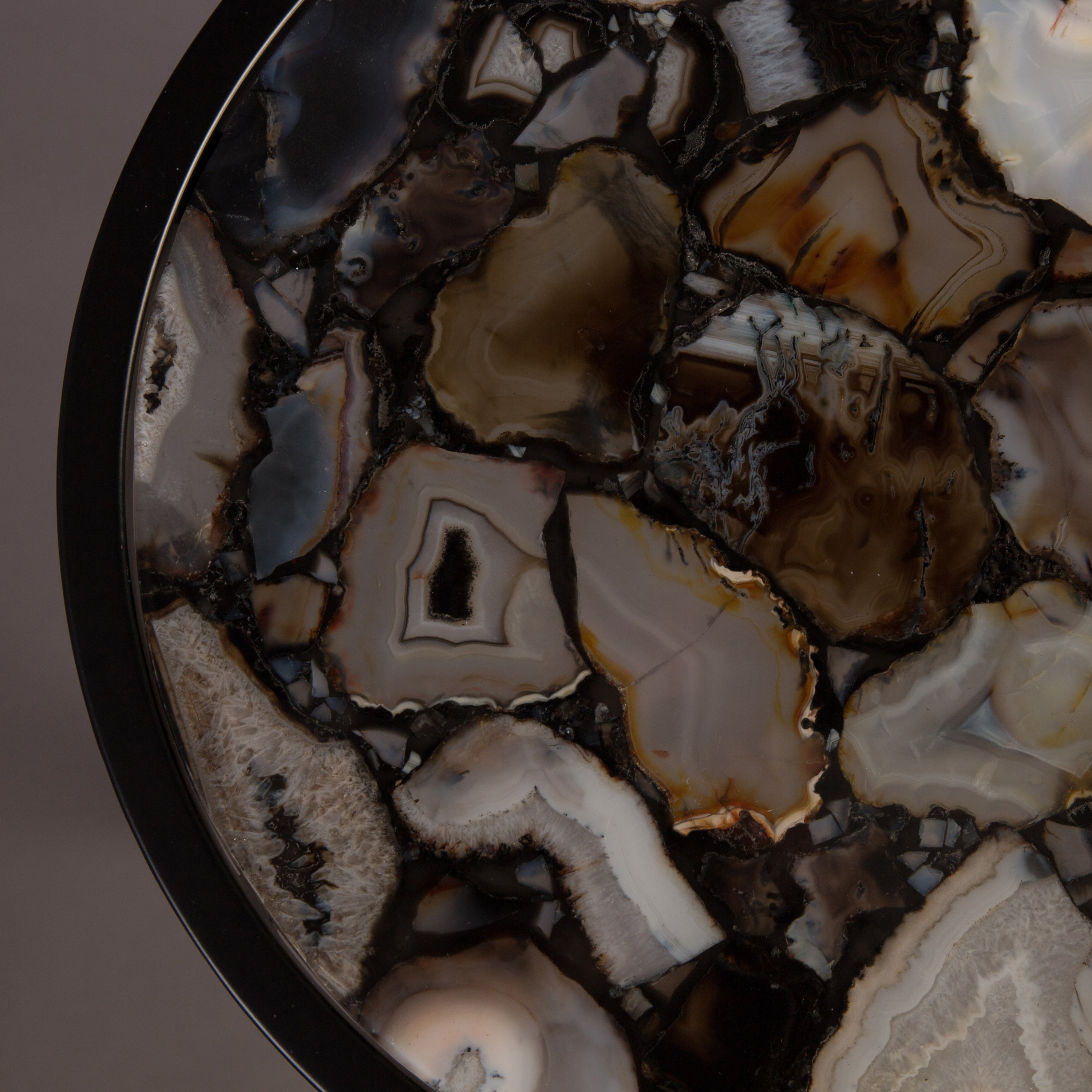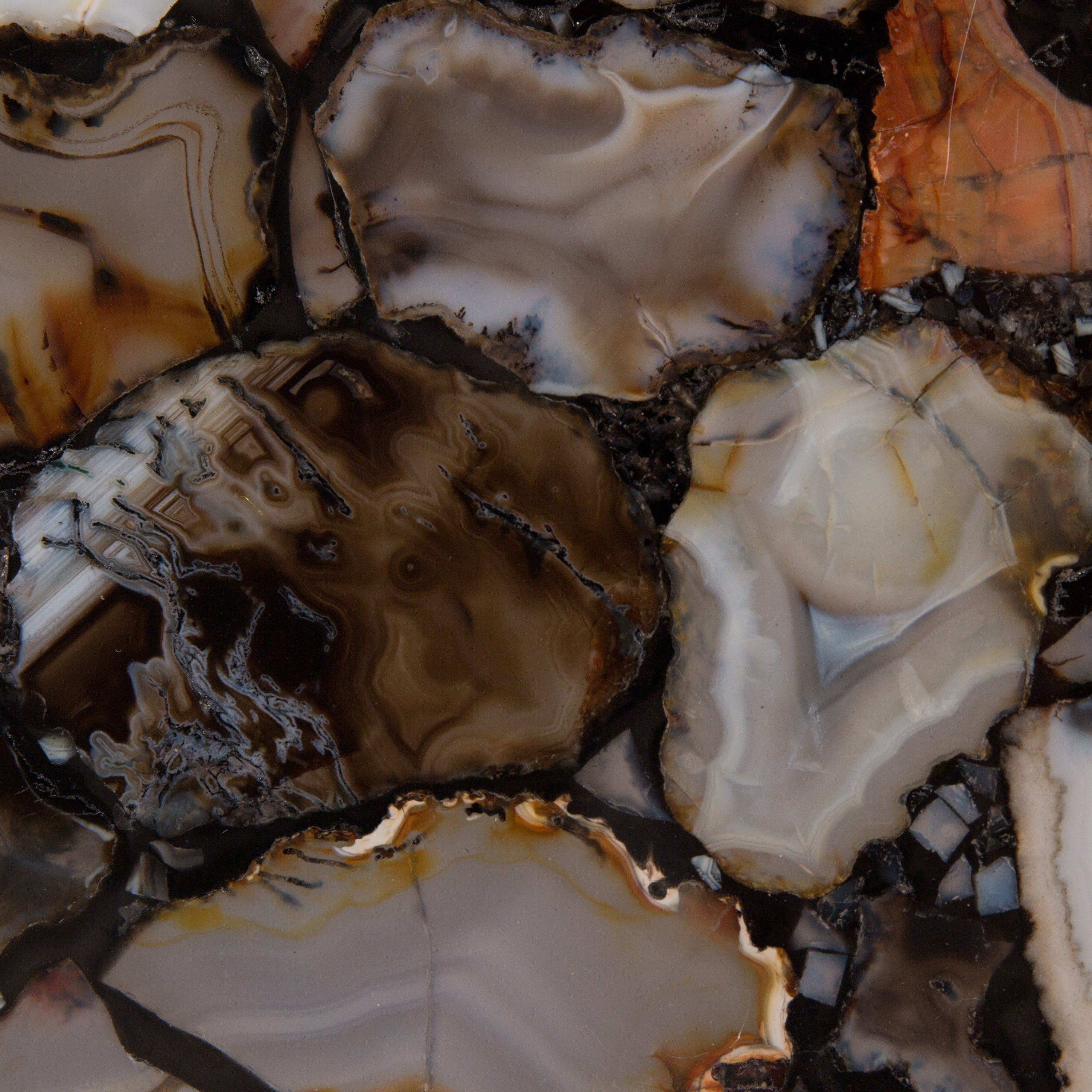 Agaat Steen Agaat steen is een edelsteen die in verschillende kleuren en vormen komt. Dit komt door de grilligheid en de ringen die elke steen kenmerkt. Hierdoor zal elk tafelblad er anders uitzien.