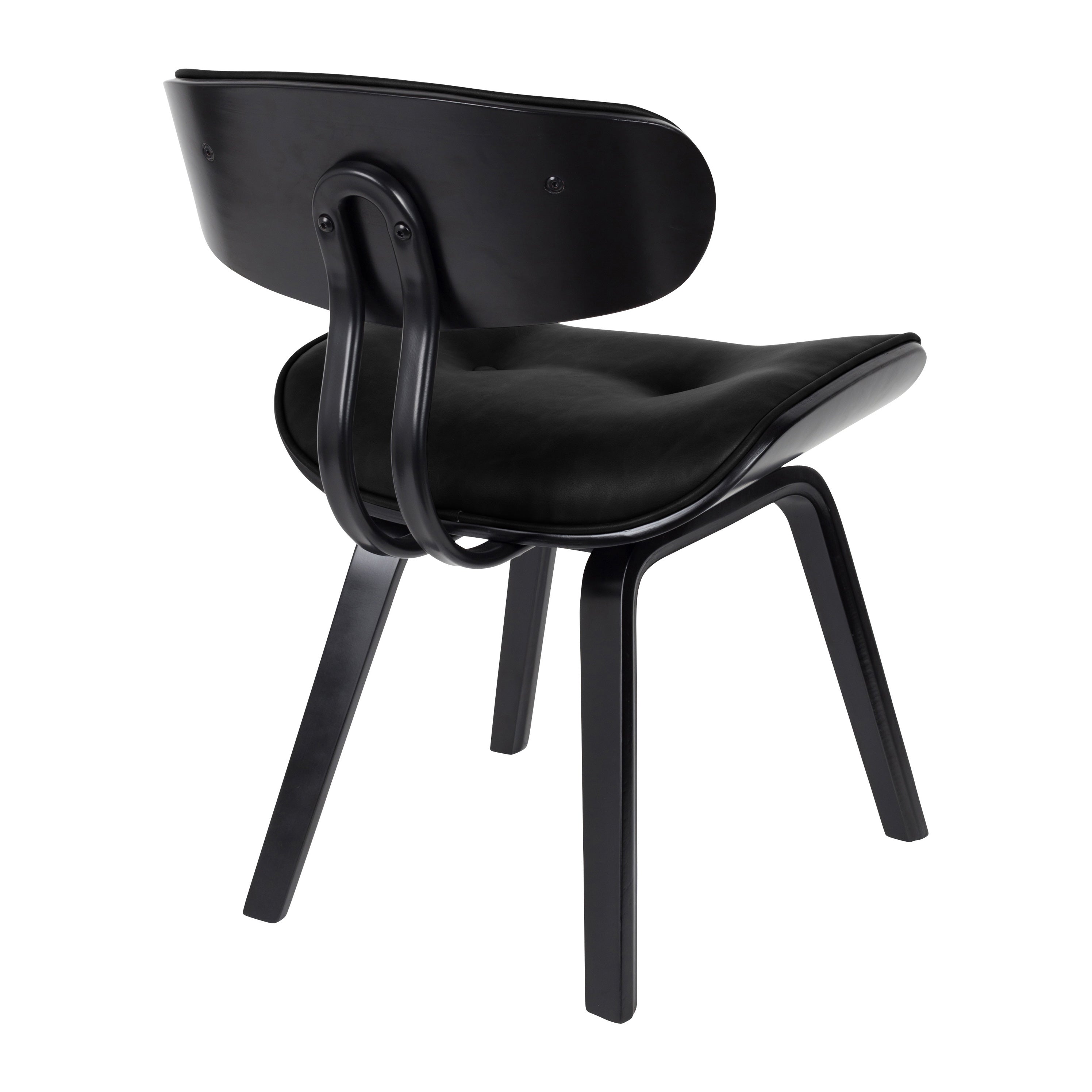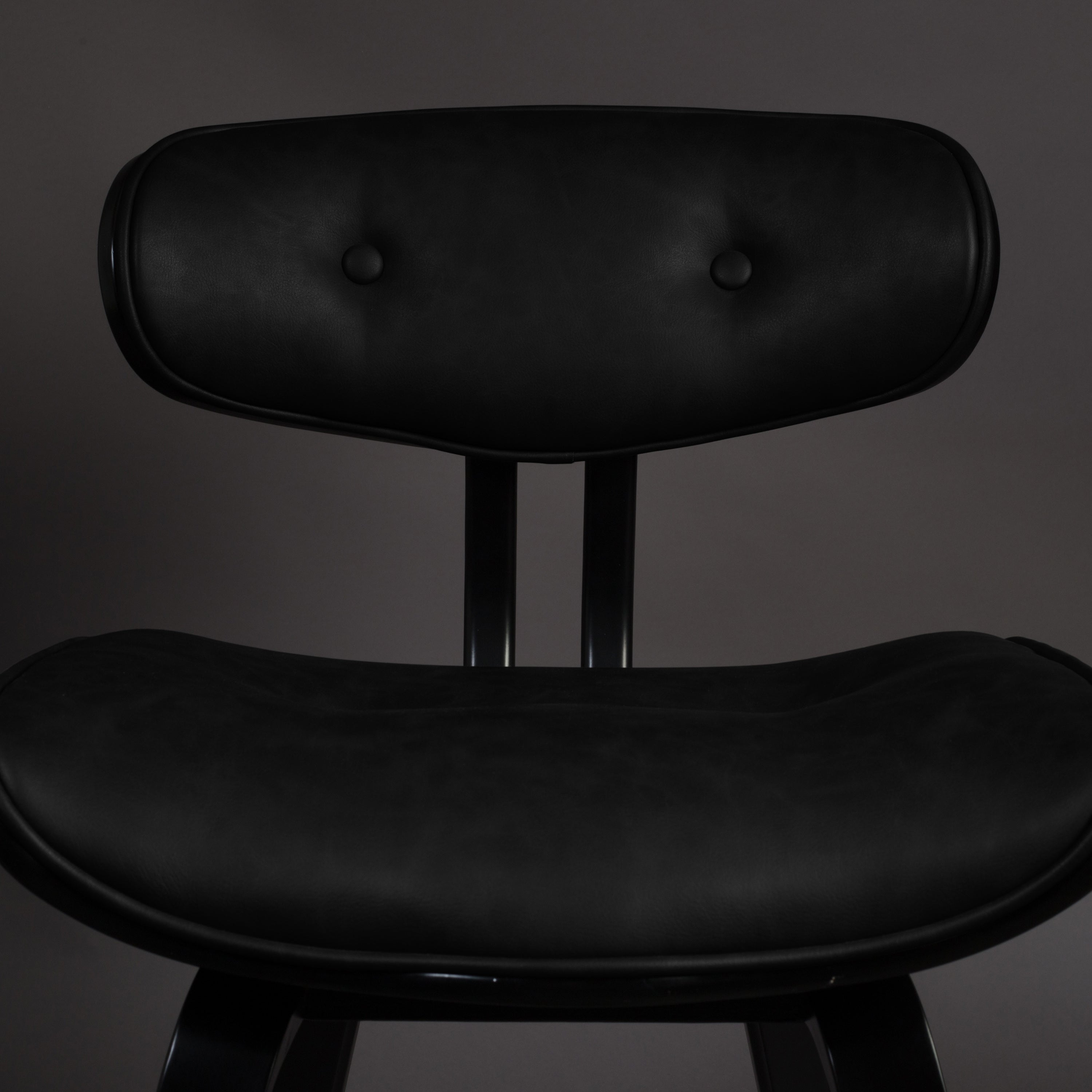 Mooi ontwerp Dat de inspiratie voor deze Blackwood van Dutchbone van een loungestoel komt, heeft ervoor gezorgd dat deze stoel heerlijk zit. Maar het blijft niet alleen bij comfort; de stoel heeft een klassieke fifties-look door het gebruik va donkere kleuren, kunstleer, hout en staal. Met deze elegante uitstraling is de Blackwood een prachtige toevoeging aan iedere woon- of eetkamer. Combineer hem bijvoorbeeld met een donkerhouten eettafel en je hebt de perfecte plek om urenlang in stijl te tafelen.