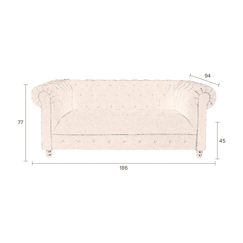 - De stijlvolle bank meet H 77 x B 186 x D 94 cm