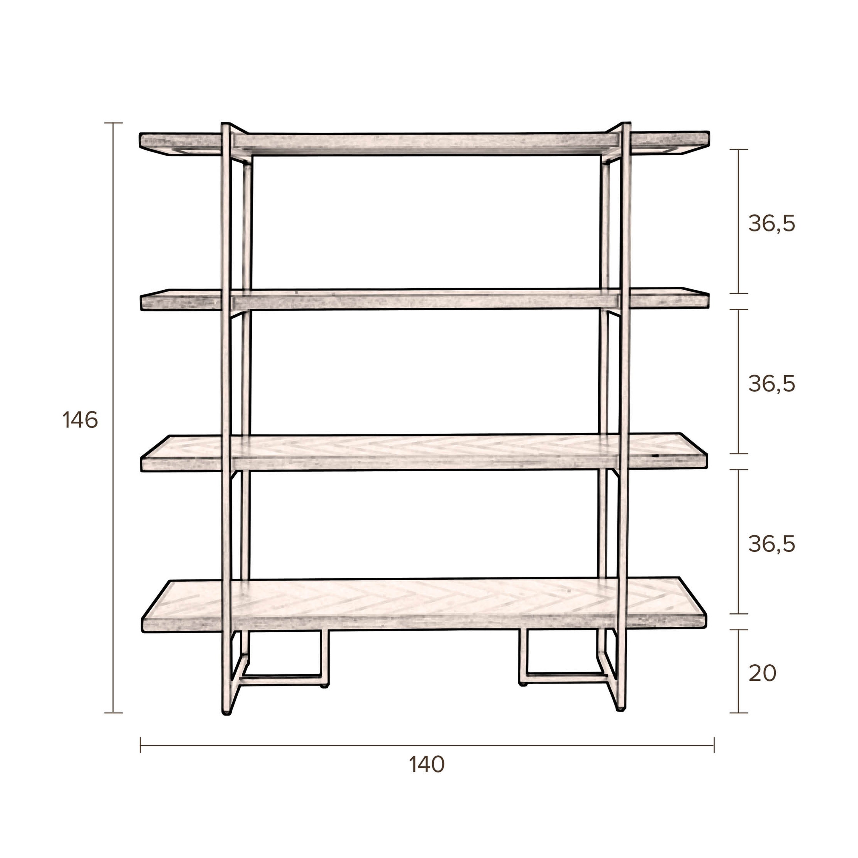 - Stijlvolle stellingkast van H 146 x B 140 x D 40 cm