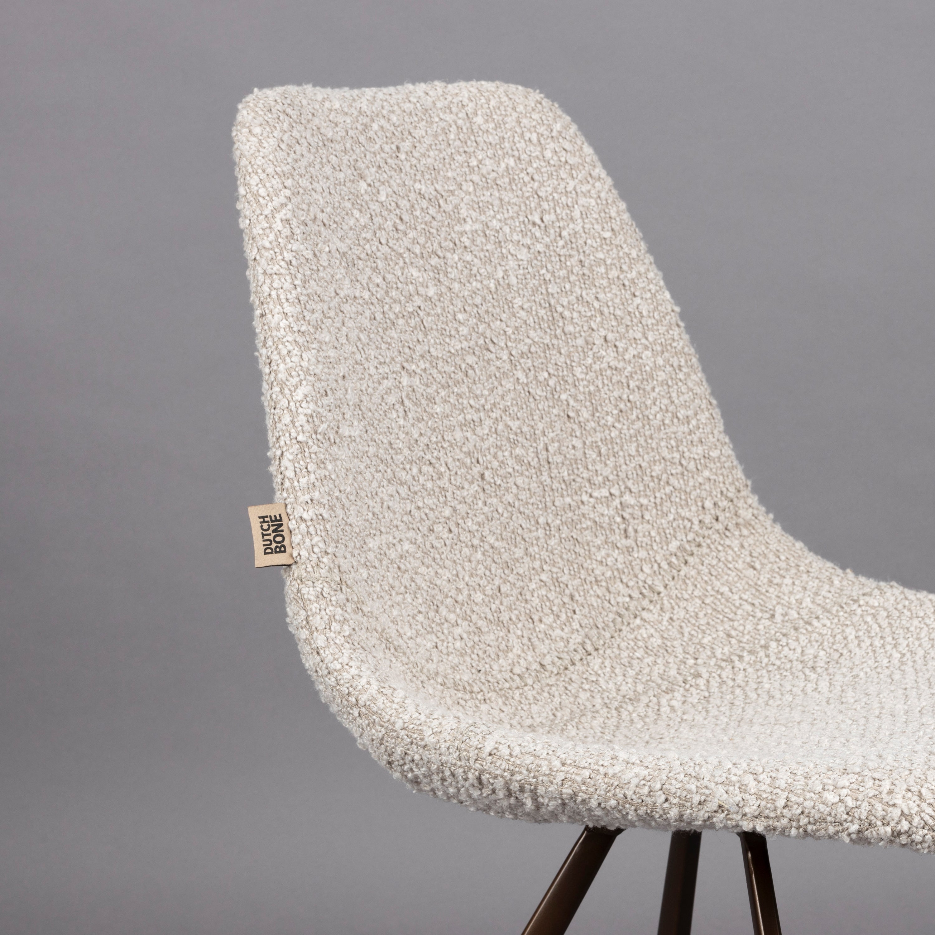 - Perfecte combinatie van een bouclé zitting en een stalen onderstel