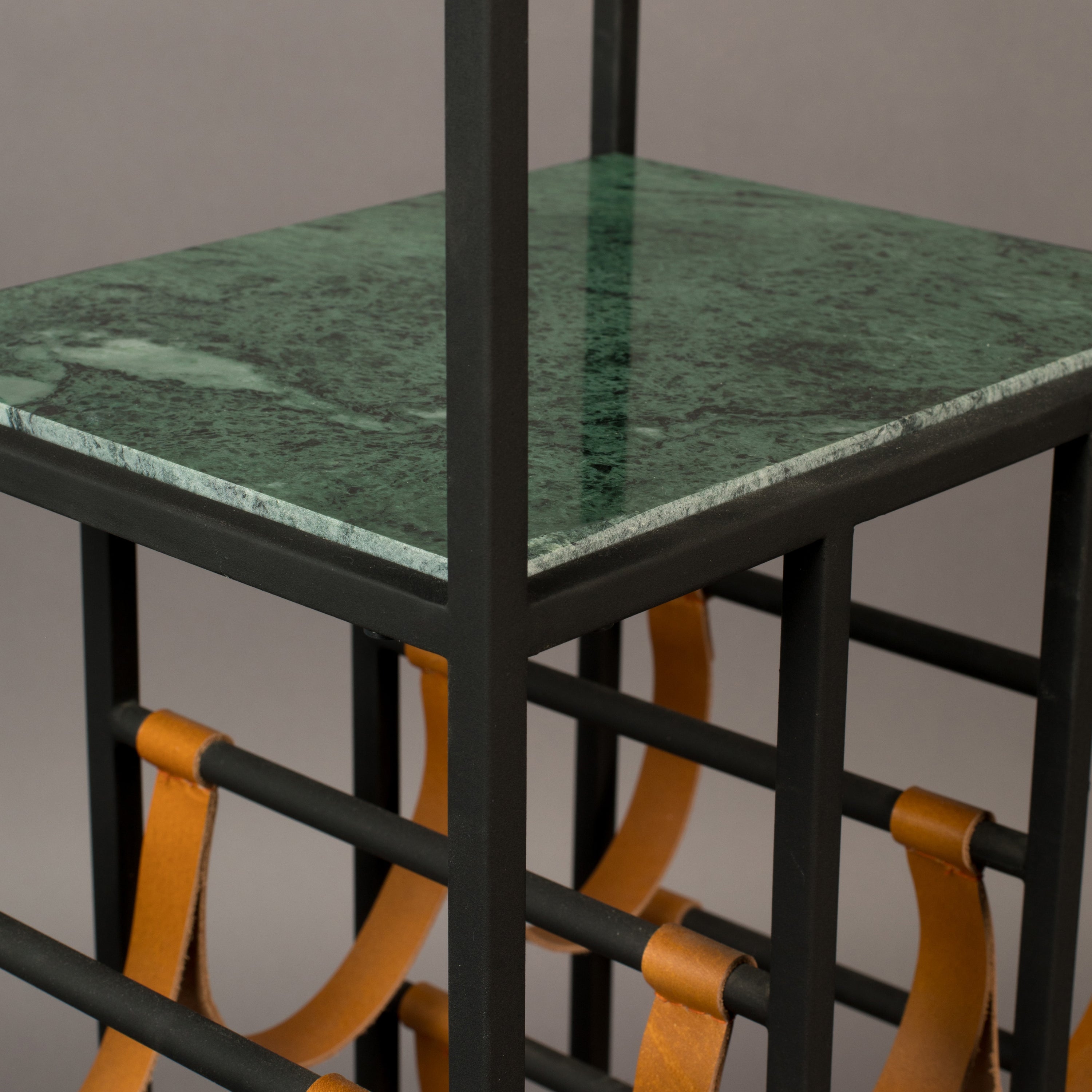 - De kast bestaat uit een stalen frame met drie marmeren planken