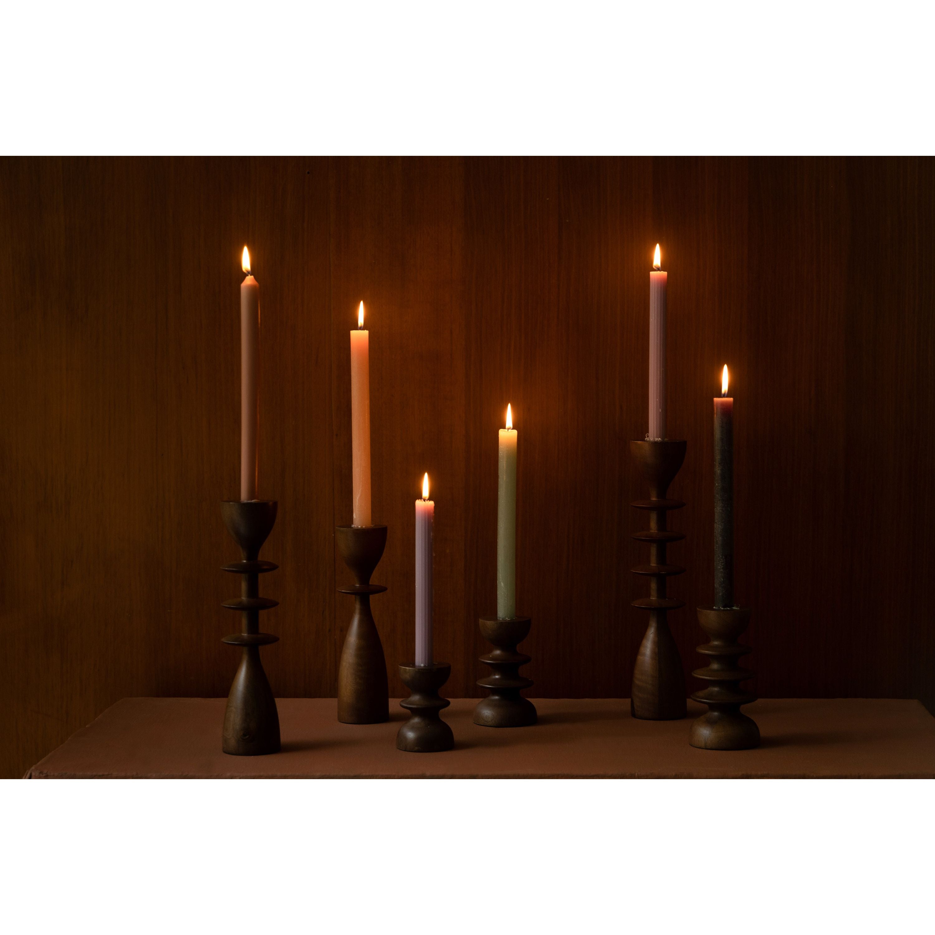 - Let op: Laat de kaars niet volledig uitbranden om mogelijke beschadiging aan de houten kandelaar te voorkomen.
