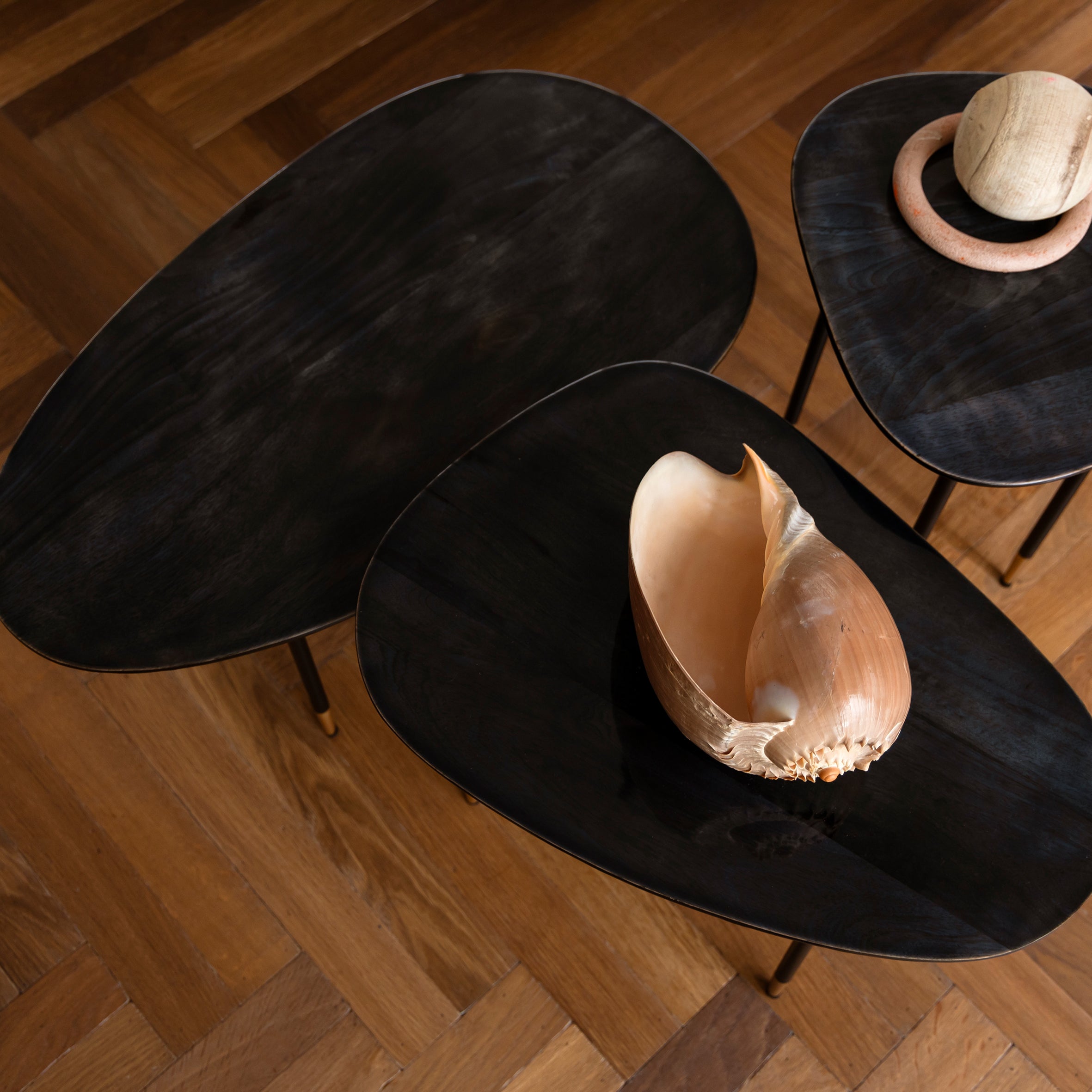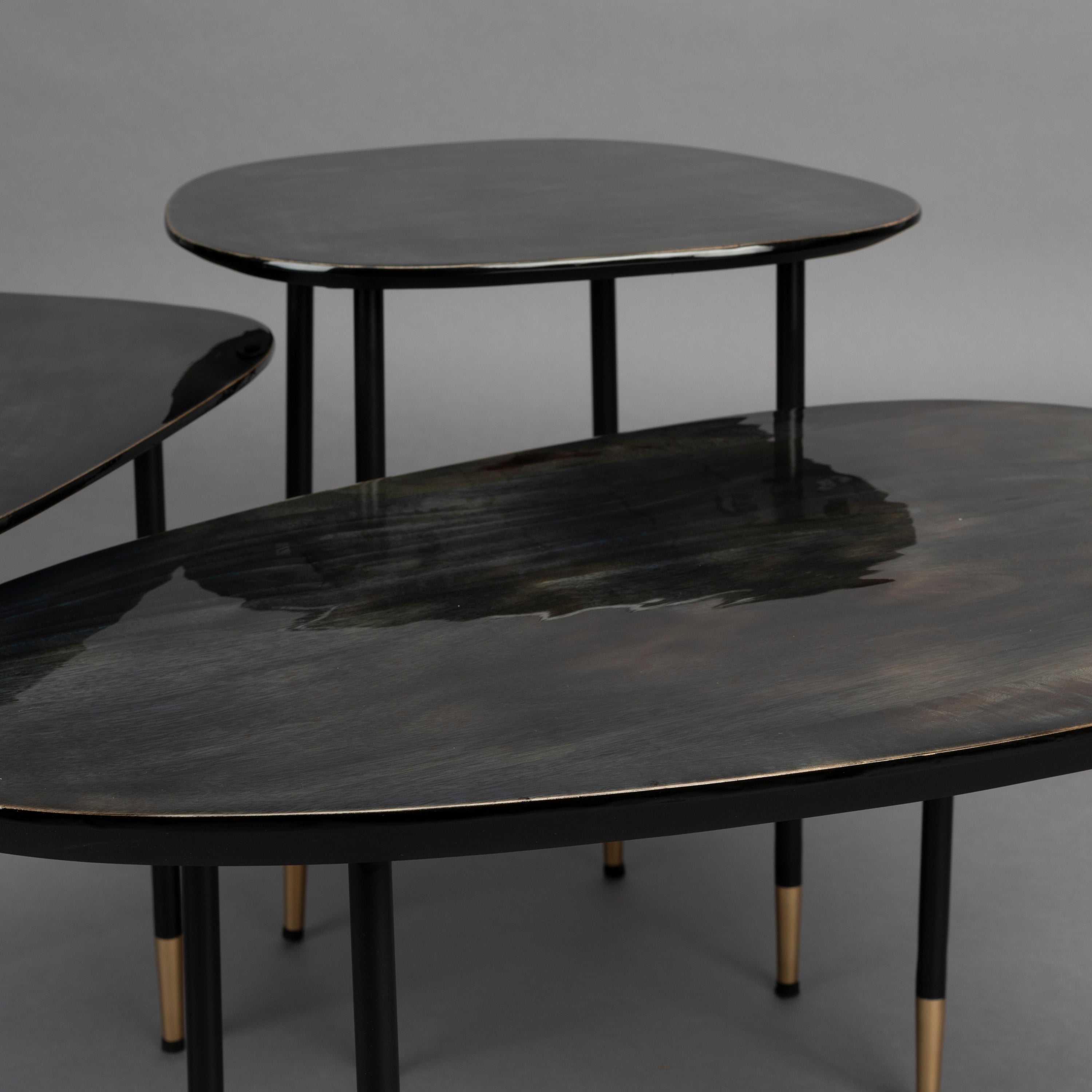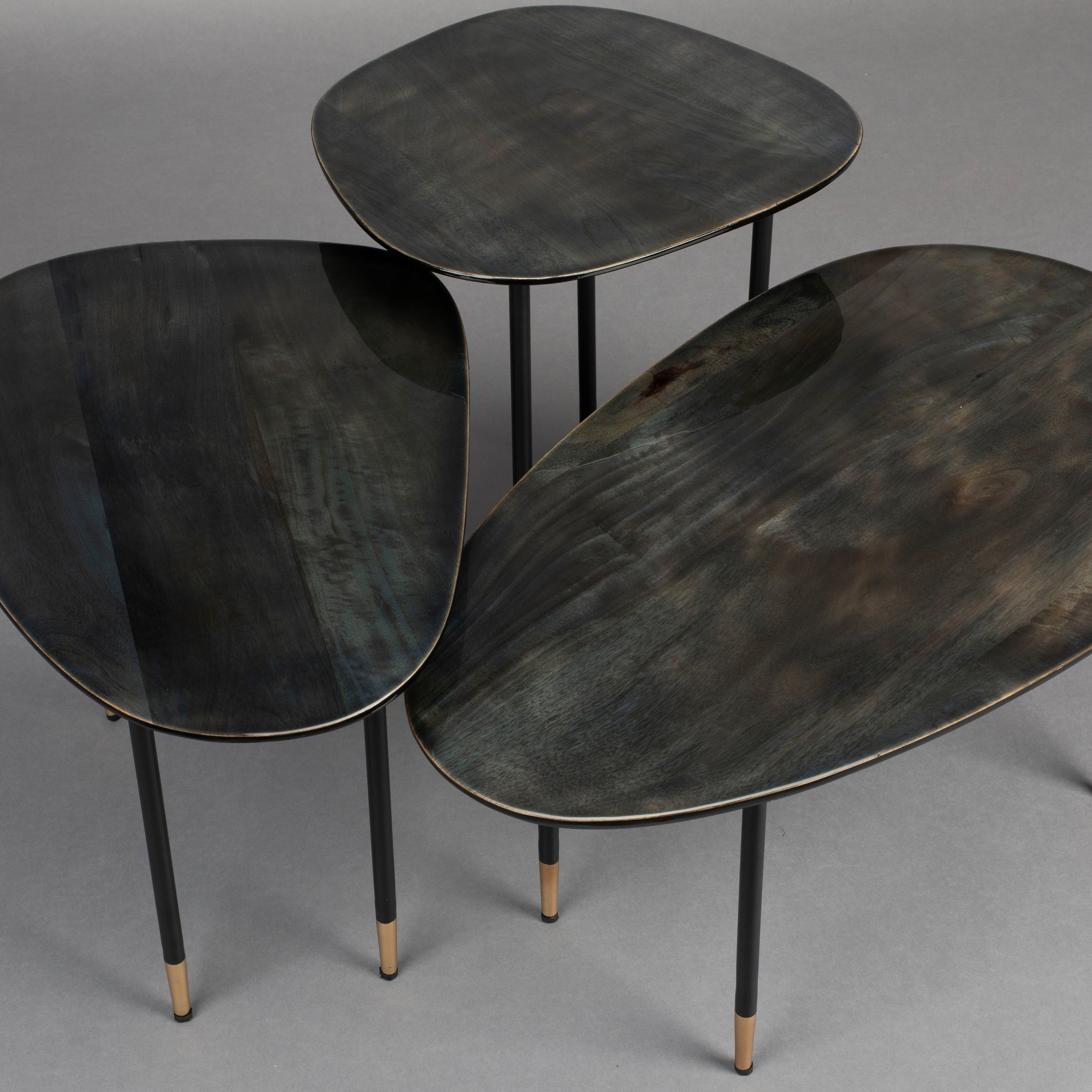 - Elke bijzettafel heeft z'n eigen organische vorm en hoogte voor een speels geheel