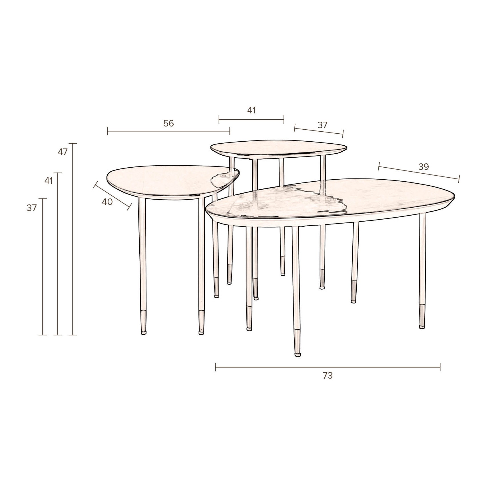 - Elegante bijzettafelset van H 47/41/37 x B 37/40/39 x D 41/56/73 cm