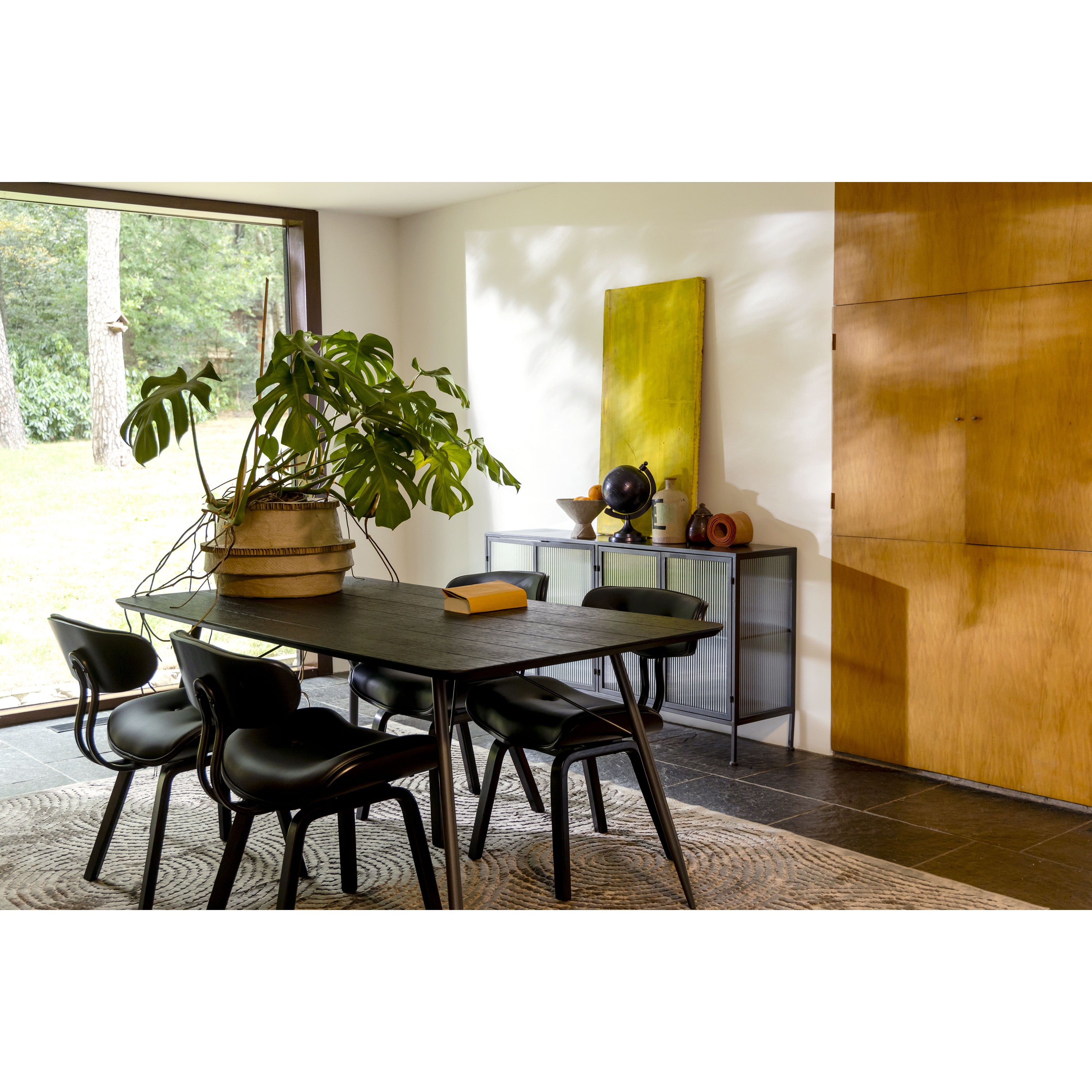 Deze eettafel Roger is een ruw industriële tafel die is gemaakt van dennenhout. Roger is verkrijgbaar in de kleuren black en natural en heeft elegante gelakte metalen tafelpoten. De planken van het tafelblad liggen mooi naast elkaar en de hoeken van de tafel zijn mooi rond afgewerkt, waardoor het tegelijkertijd ook een elegante tafel is.