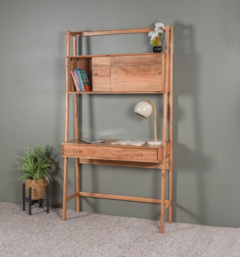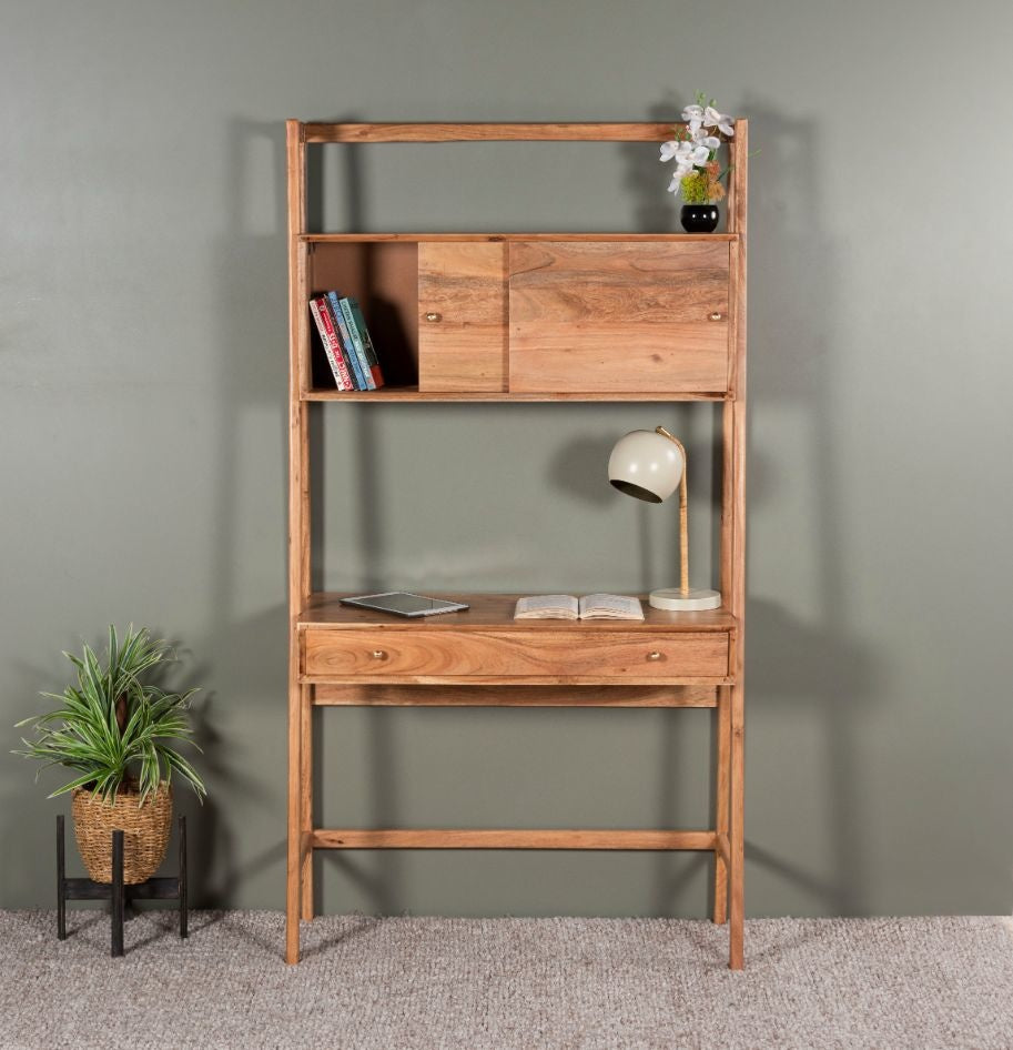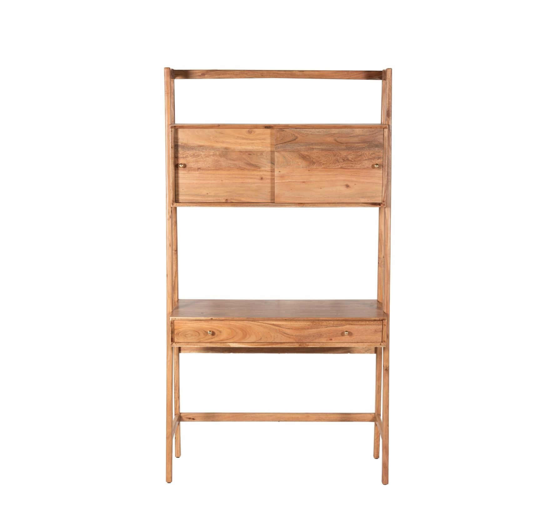 Basic Scandinavian - Bureau - opbouw - 2 schuifdeuren - 2 lades - massief acacia - naturel Puur Scandinavisch bureau met opberg opbouw voorzien van 2 schuifdeuren en 2 lades vervaardigd in naturel massieve acacia