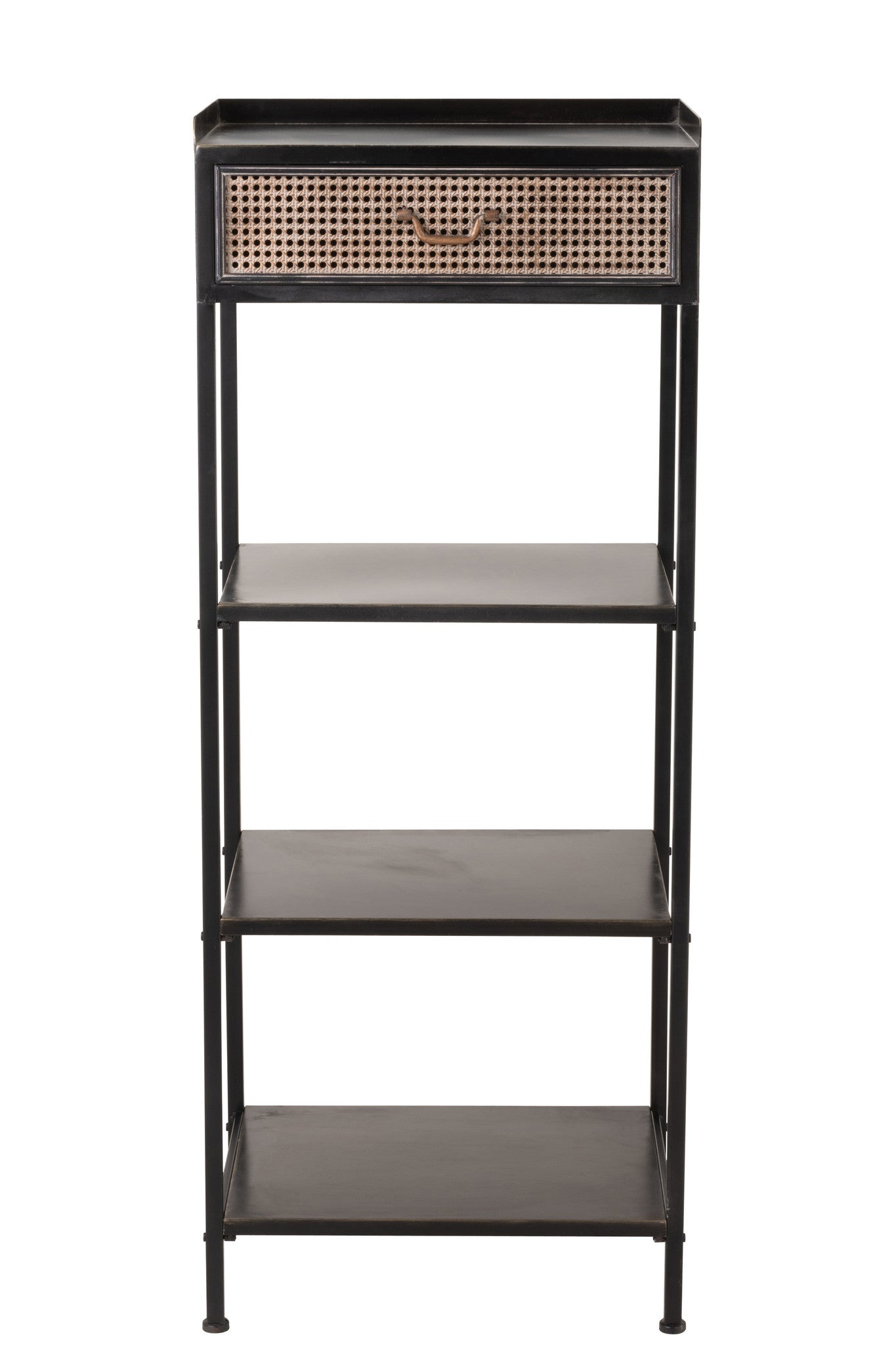 Black Metal - Rek - zwart - metaal - 1 lade - 3 leggers Dit nuttige rek is vervaardigd uit metaal en ondersteund door een metalen frame. De voorzijde van de lade is afgewerkt in geprint cannage deco.
