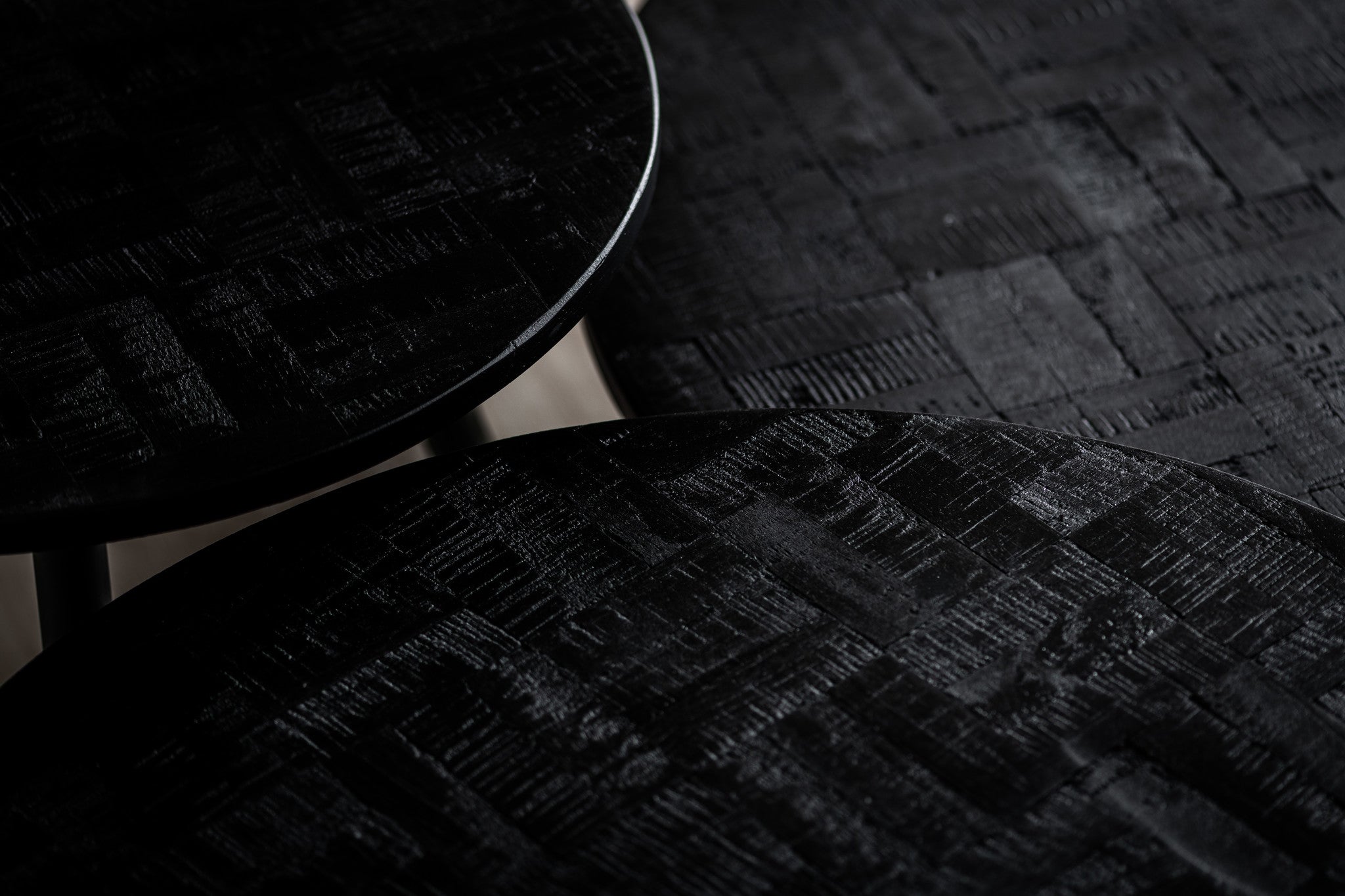 Duverger® Checked - Salontafels - set van 3 - rond - zwart - teak - ge