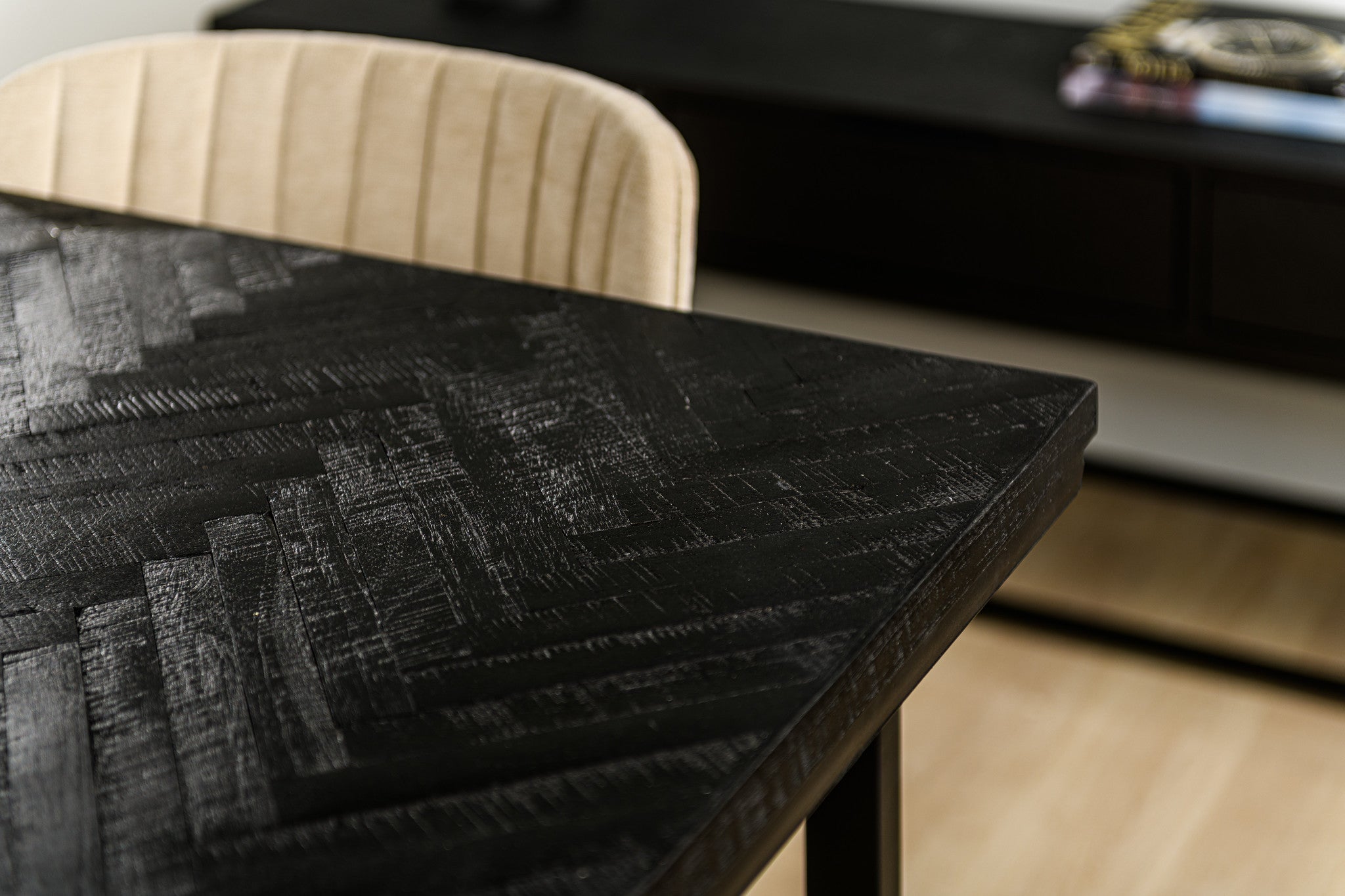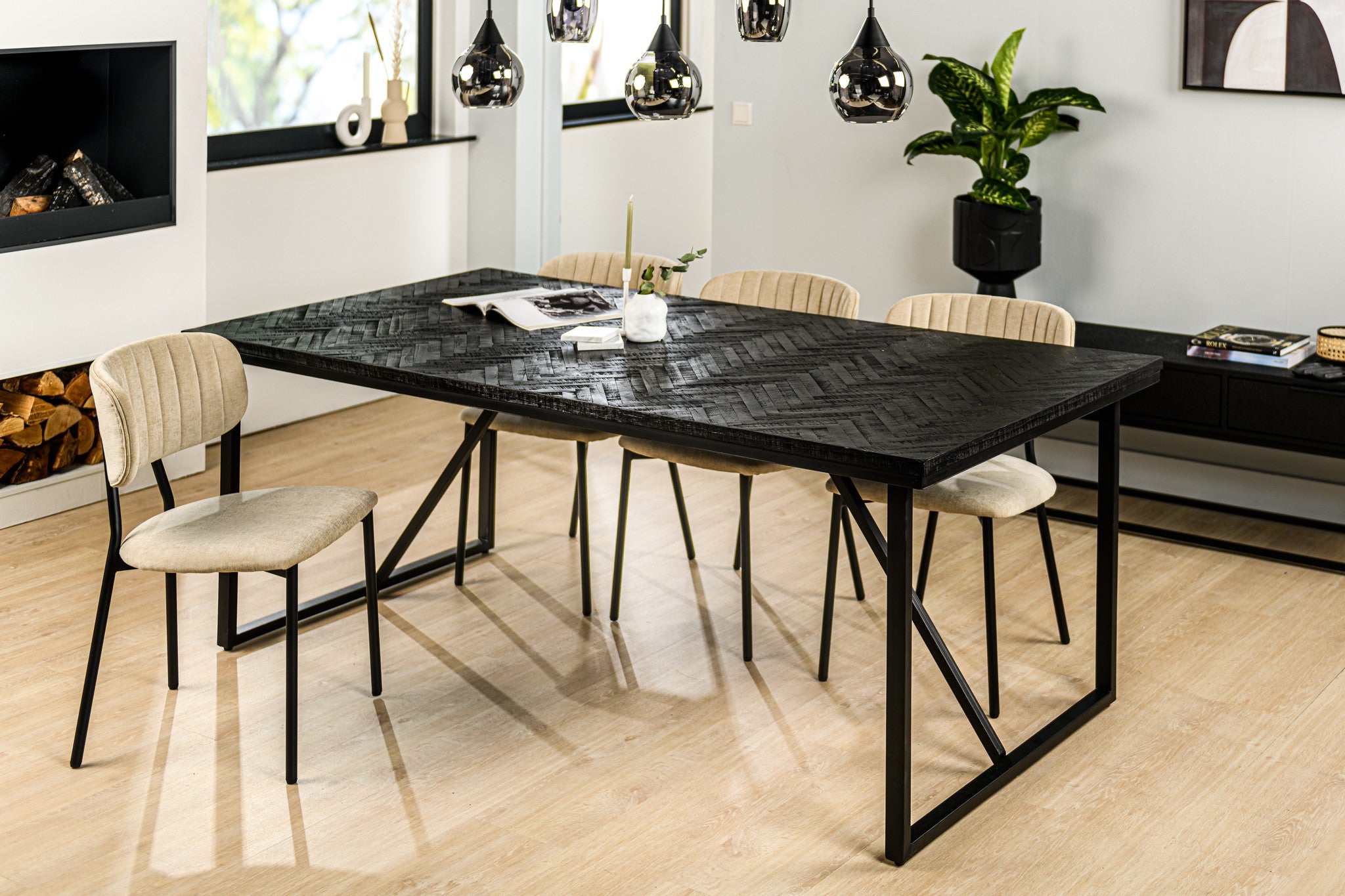 Duverger® Herringbone - Eettafel - zwart - visgraat parket - metalen f
