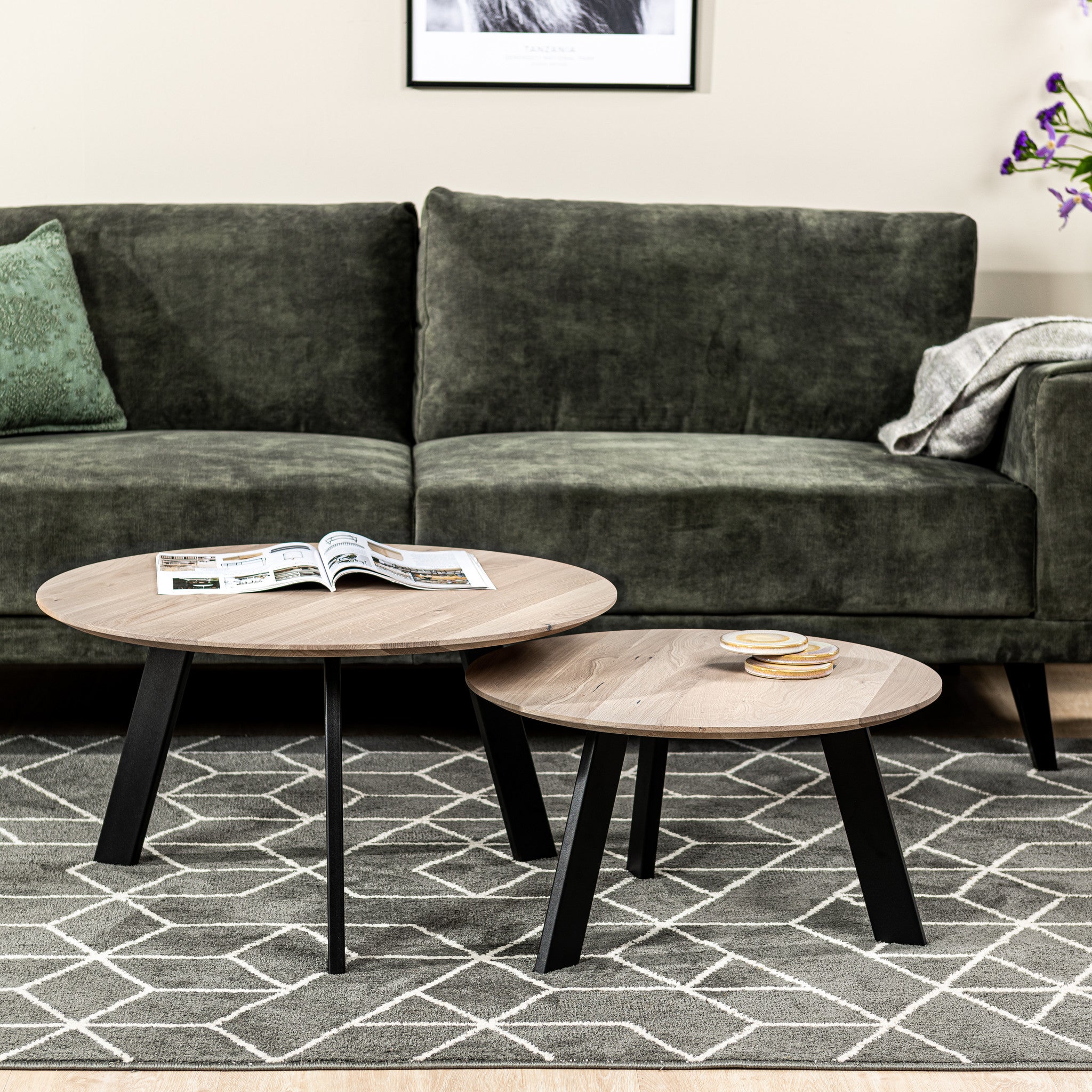 Industry oak - Salontafels - set van 2 - rond - eiken blad - naturel - stalen poten - zwart Klassevolle ronde set van 2 salontafels met een naturel eiken blad en zwart stalen poten met industriële design look