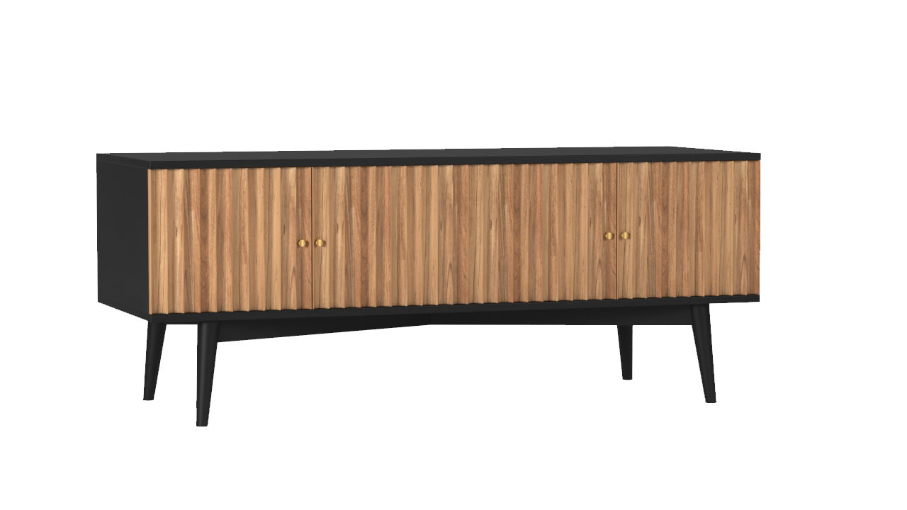 Scandinavian Black Piano - TV-meubel - 4 deuren - massief acacia - naturel - zwarte omkasting Scandinavisch Black Piano TV-meubel met 4 deuren vervaardigd in naturel massieve acacia en zwarte omkasting De Scandinavian Piano lijn is wondermooi dankzij zijn speelse schakering en in harmonie met elk interieur