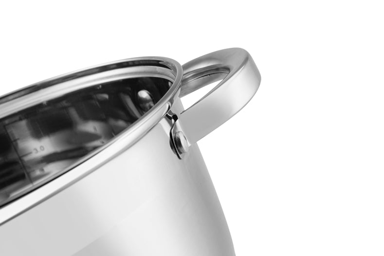 Prachtige 6-delige pannenset van hoge kwaliteit. Een set gemaakt van hoogwaardig roestvrij staal. Product gerenommeerde merk EDËNBËRG. De bodem is 9 laags voor behoud van warmte. In de pan zit een praktische maataanduiding voor gebruiksgemak.