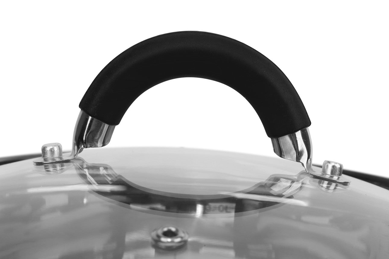 - Kookpan met glazen deksel: inhoud 3,0 liter, 18 x 11.5 cm