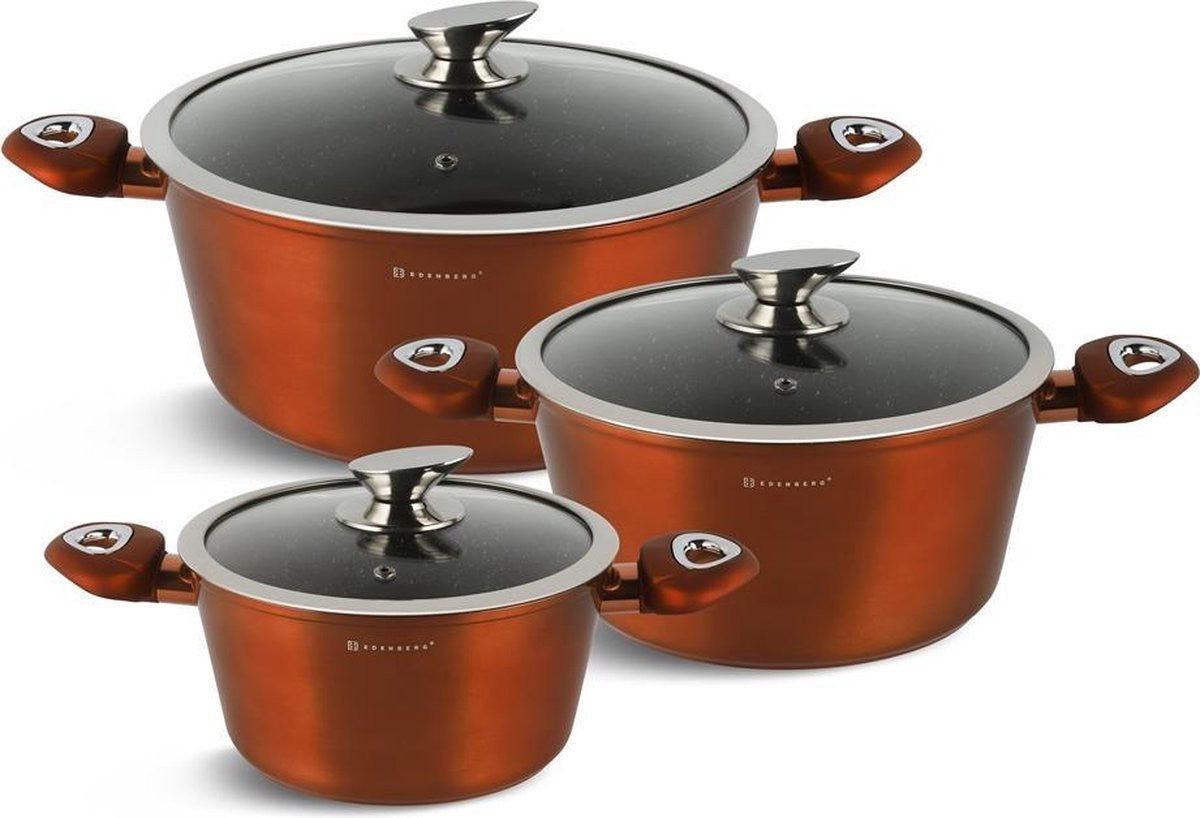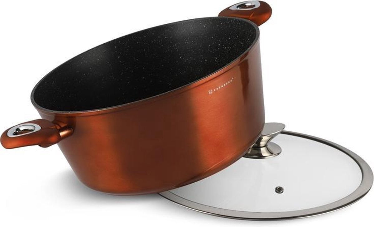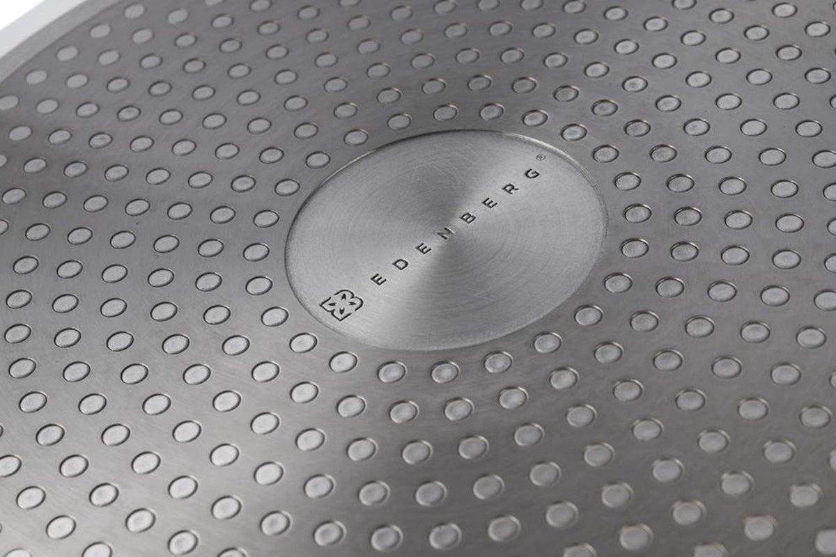 Deze prachtige pannenset van Edënbërg wordt geproduceerd onder de strengste Duitse normen en met het beste aluminium. De bodem is bedekt met maar liefst 3 lagen marmer met een mooie zwarte binnenkant die niet verkleurd. Dankzij de dikke bodem zijn de pannen zeer duurzaam en wordt het eten gelijkmatig verwarmd. De pannen kunnen worden gebruik op een kookplaat en ook op een fornuis met inductie.