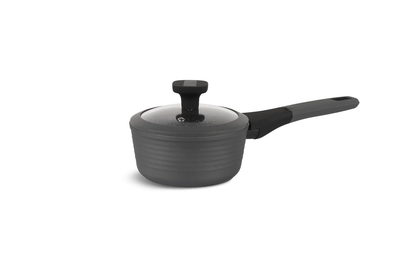 - Steelpan met glazen deksel: inhoud 1,3 liter, diameter 16 cm