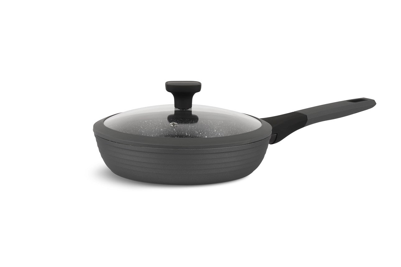 - Hapjespan met glazen deksel: inhoud 2,0 liter, diameter 24 cm
