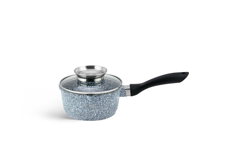 Deze prachtige pannenset van EDËNBËRG wordt geproduceerd onder de strengste Duitse normen en met het beste aluminium. De bodem is bedekt met maar liefst 3 lagen marmer met een mooie zwarte binnenkant die niet verkleurd. Dankzij de dikke bodem zijn de pannen zeer duurzaam en wordt het eten gelijkmatig verwarmd. De pannen kunnen worden gebruik op een kookplaat en ook op een fornuis met inductie.