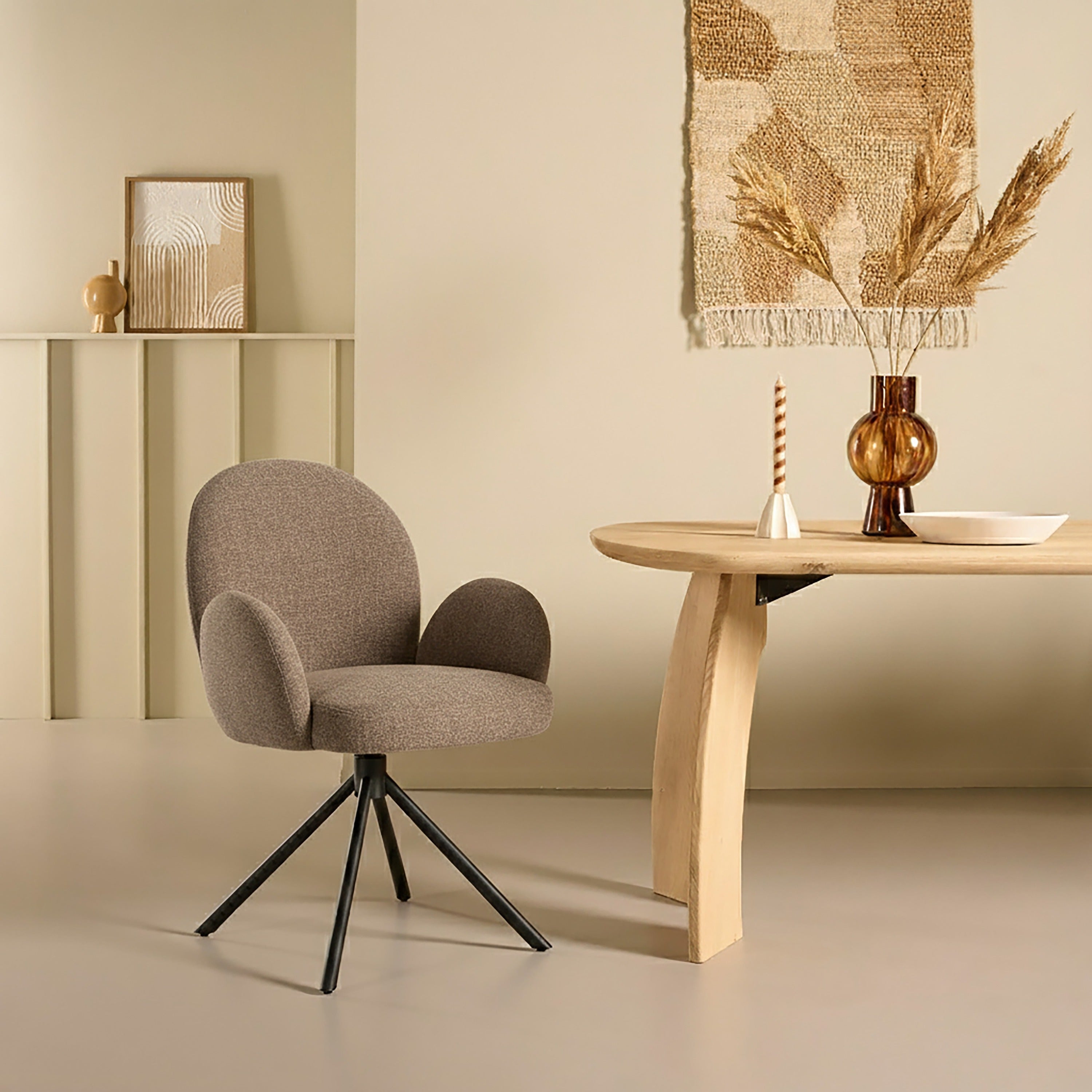 Eetkamerstoel Moon - Bruin - Textiel - 64x88x63cm (BxHxD)