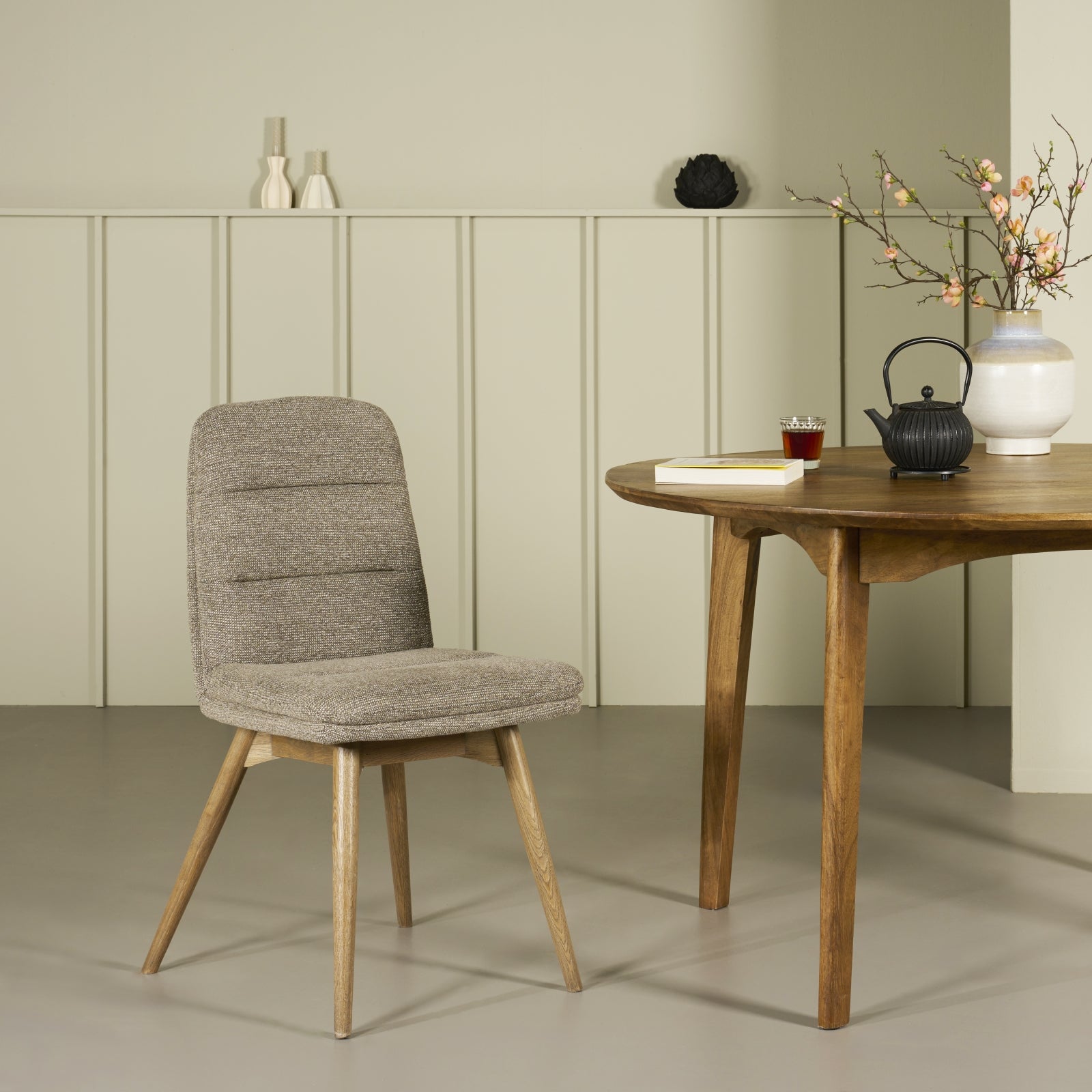 Eetkamerstoel Mora is een echte eyecatcher voor jouw eetkamer. Met zijn zachte, afgeronde vormen en lichte houten poten voegt deze stoel een stijlvolle touch toe aan iedere ruimte. De luxe structuur van de bekleding nodigt uit om plaats te nemen, terwijl de natuurlijke, gemêleerde kleuren moeiteloos harmoniëren met elk interieur. Eetkamerstoel Mora is ideaal voor lange avonden aan de eettafel, waar je kunt genieten van fijne gesprekken en gezellig samenzijn.- afmeting 48x88x63 cm (bxhxd)