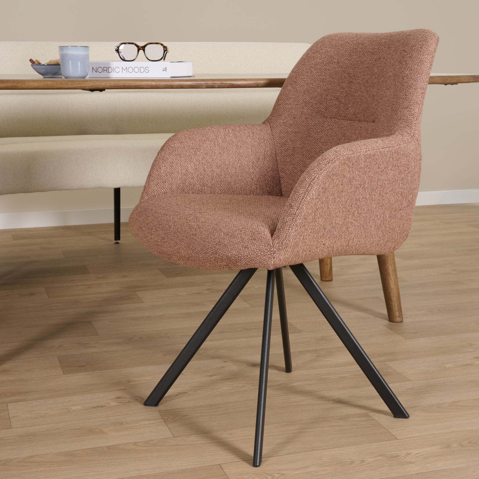 Eetkamerstoel Selnass is een comfortabele armstoel en een ideale aanvulling voor sfeervolle avonden aan de eettafel. Met een stijlvolle uitstraling en moderne twist, maakt deze stoel van elke ruimte een plek waar je graag verblijft. Laat eetkamerstoel Selnass je inspireren om samen met vrienden en familie te genieten van lange, gezellige diners vol gesprekken en plezier. Comfort: Zodra je plaatsneemt op de Selnass, ervaar je het stevige comfort van de koudschuimvulling. De stevige constructie, dankzij het houtvezelplaat binnenwerk, biedt betrouwbare ondersteuning. De zitting met armleuningen is ontworpen om precies de juiste steun te geven, zodat je urenlang comfortabel kunt zitten op eetkamerstoel Selnass.- afmeting 60x88x64 cm (bxhxd)