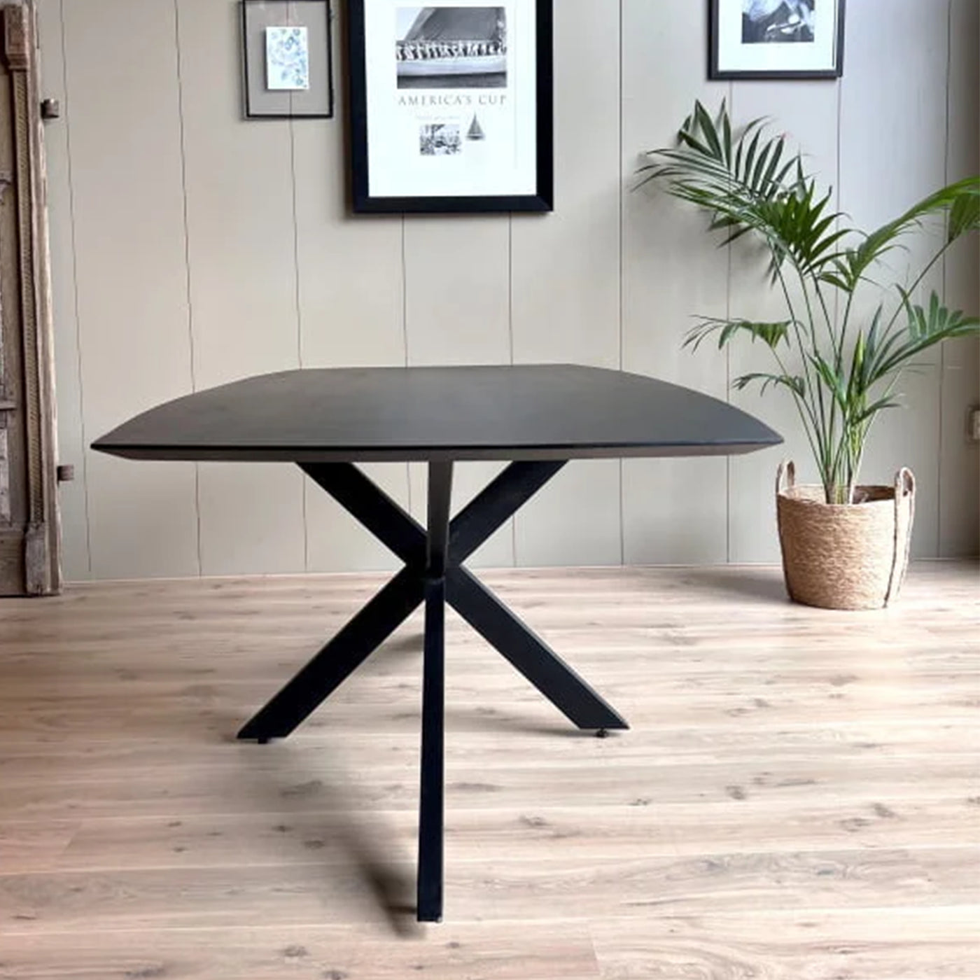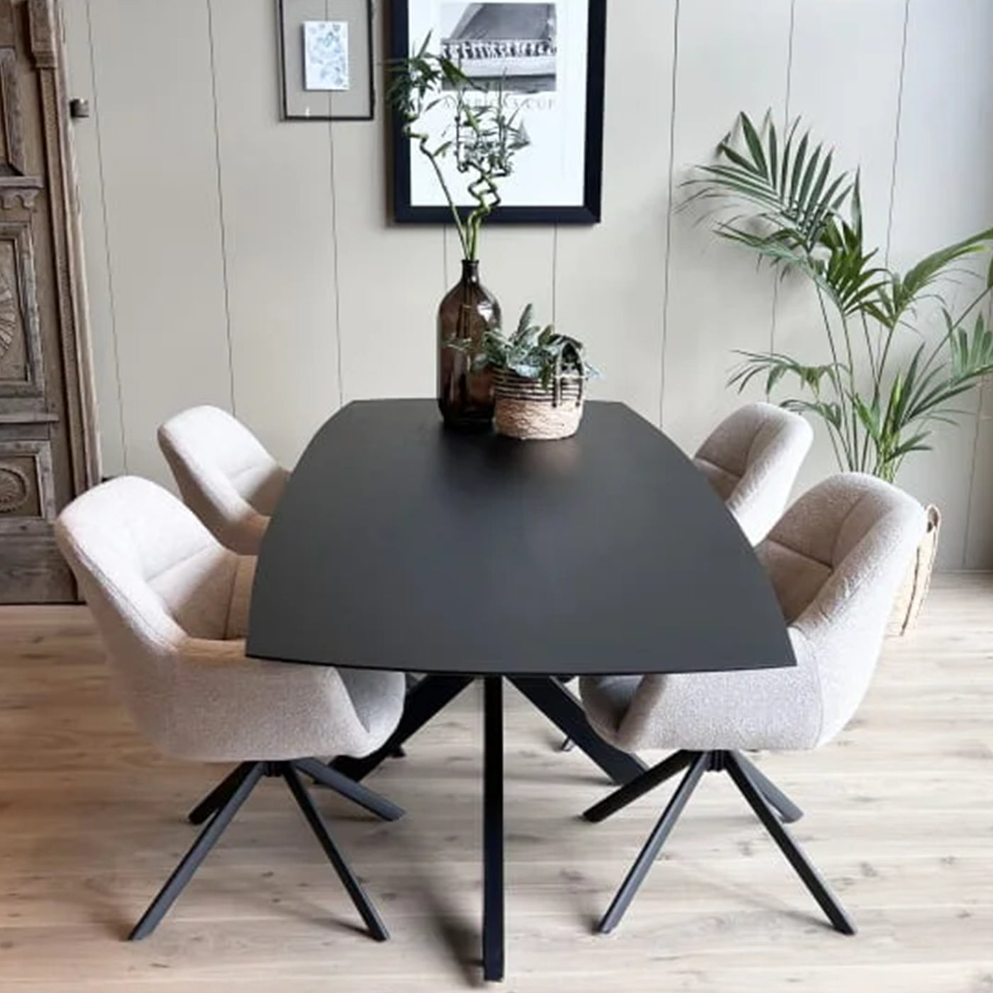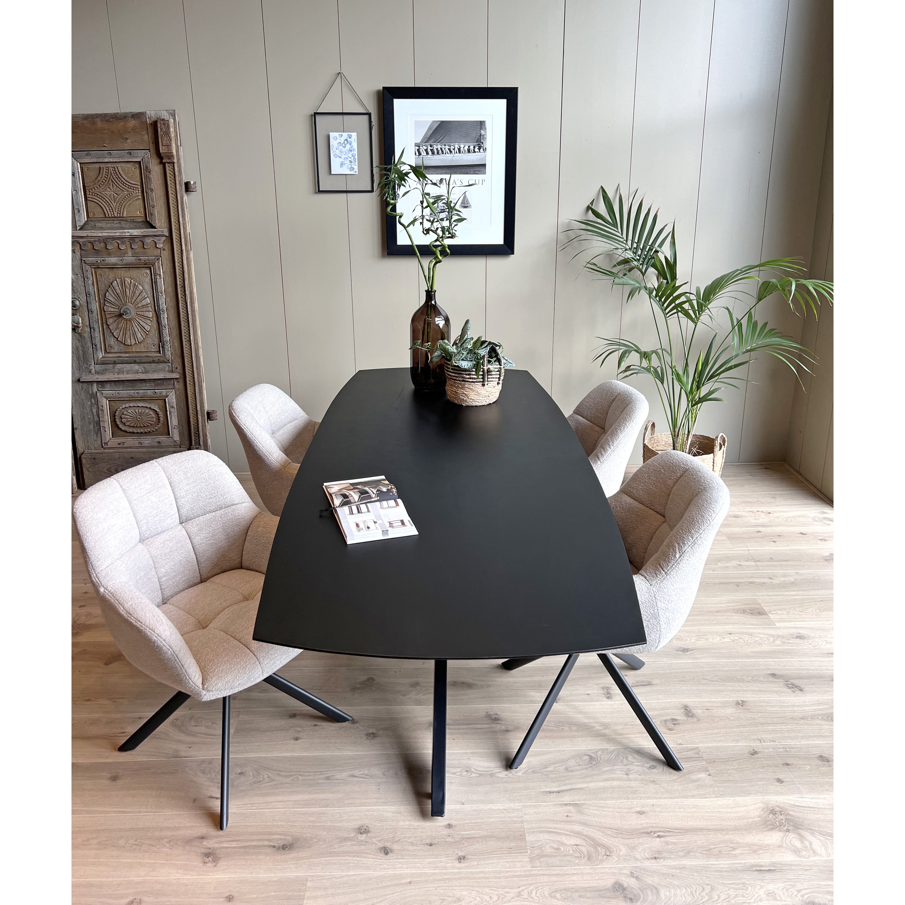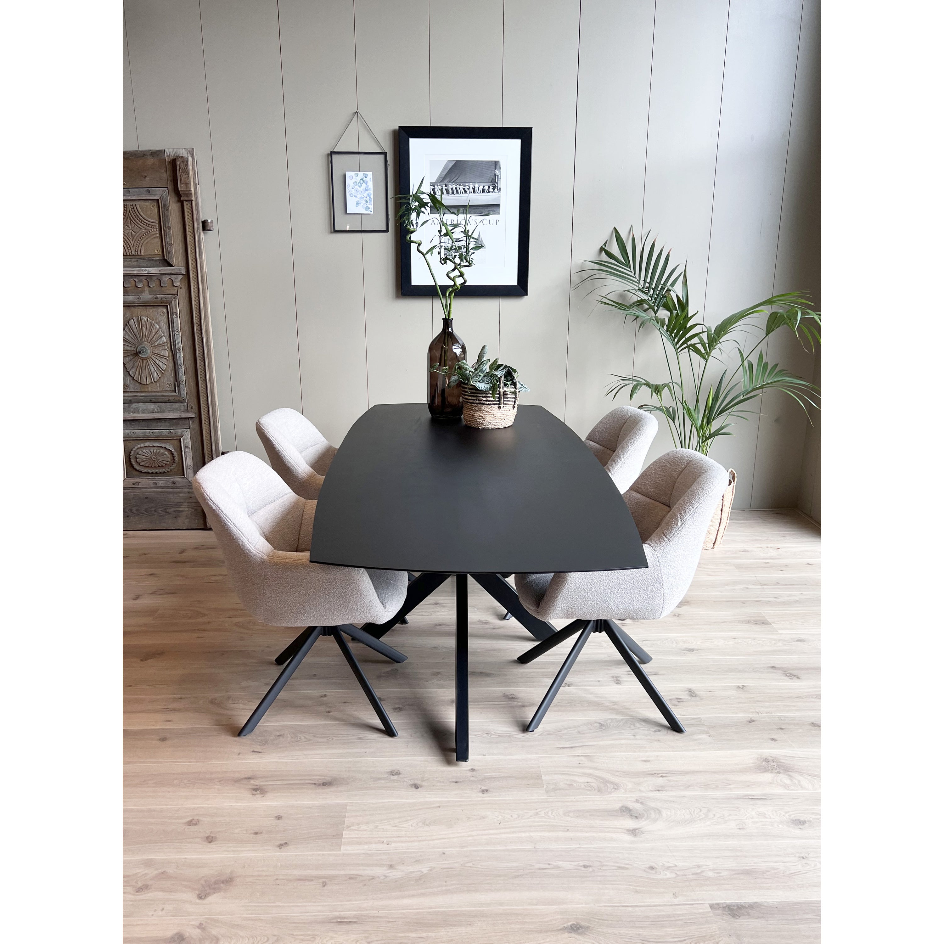 Eetkamertafel Mango Deens ovaal Zwart 200x100 cm met Spinpoot
