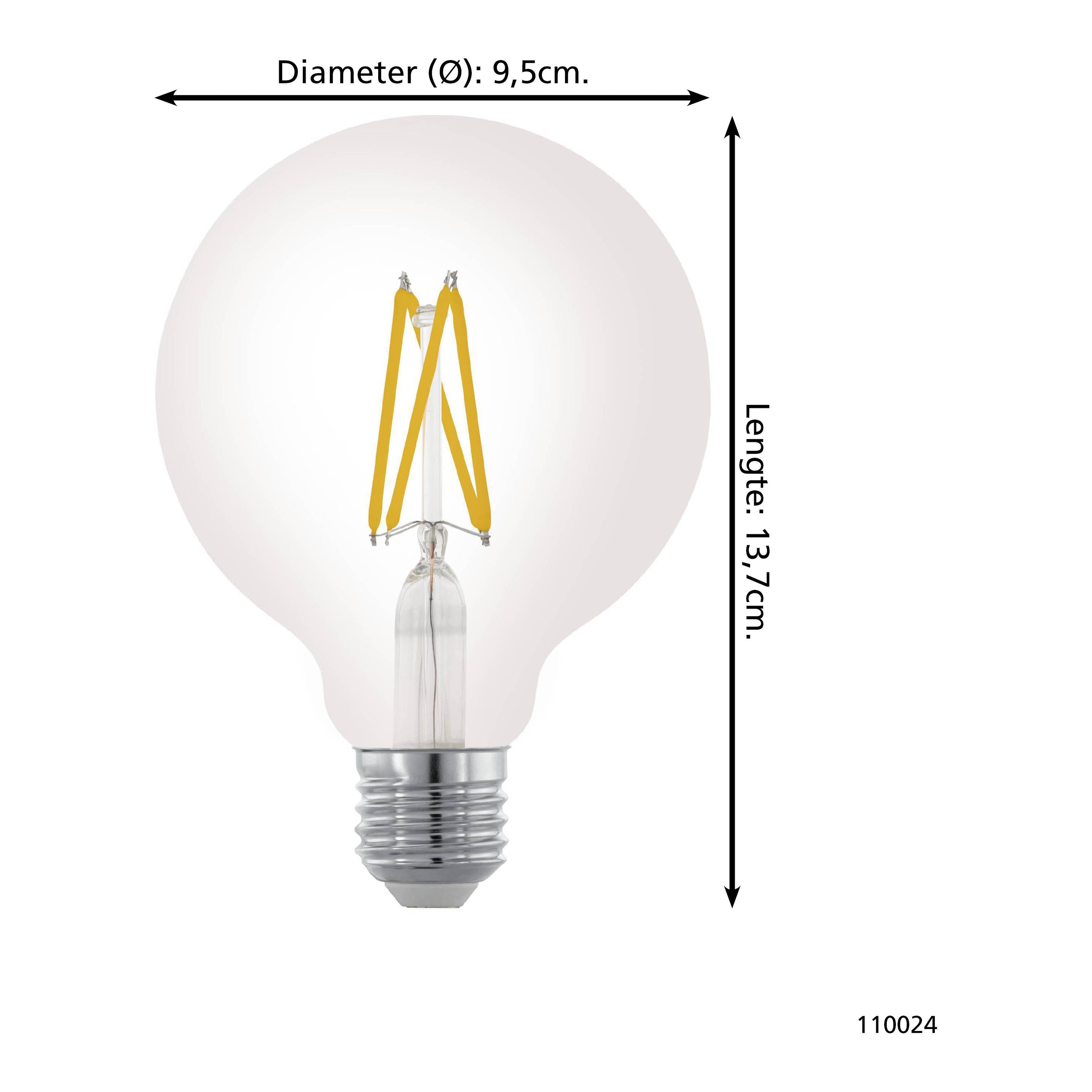 EGLO LED Lamp - E27 - Ø 9,5 cm - Helder - 2700K - Dimbaar