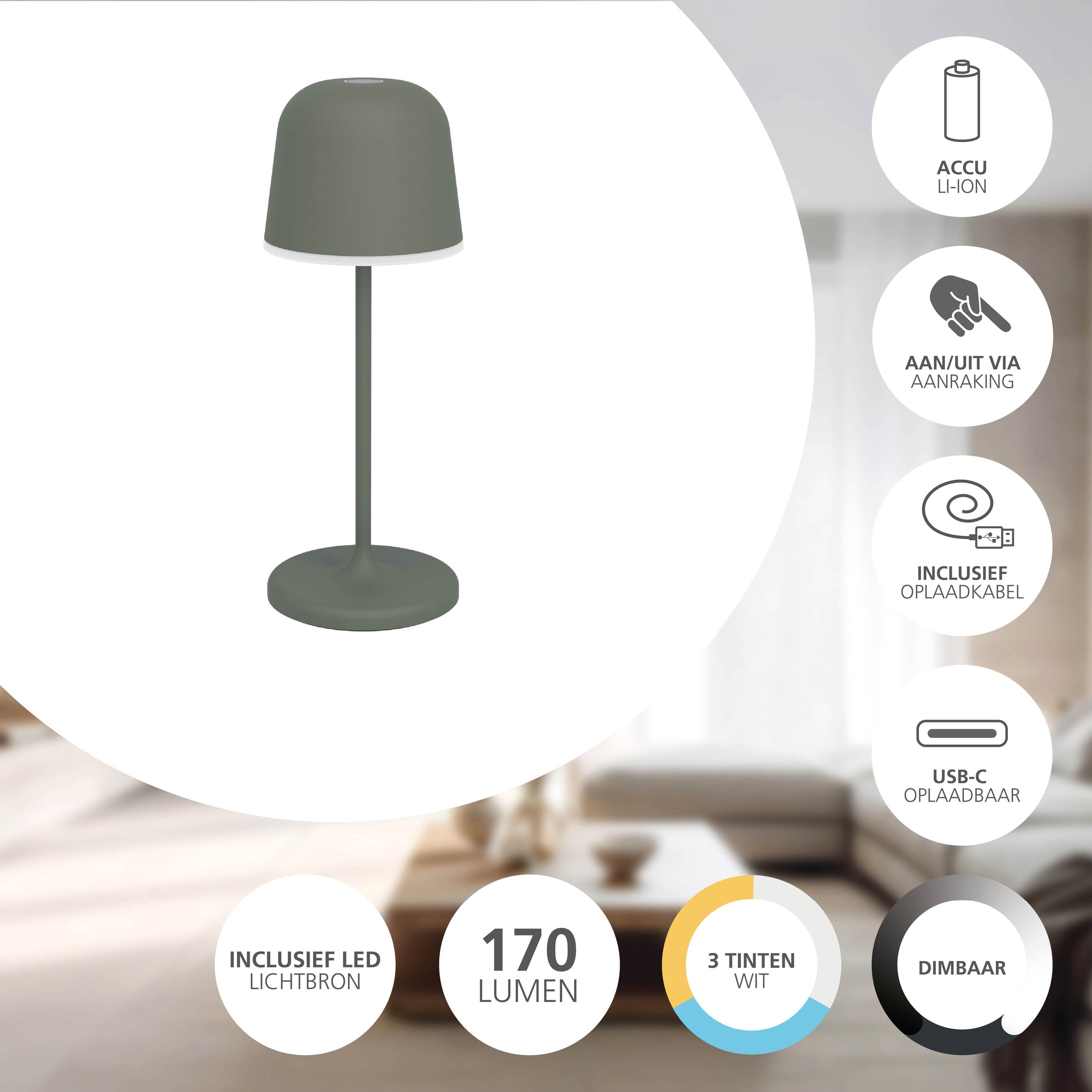 - USB-C oplaadbaar