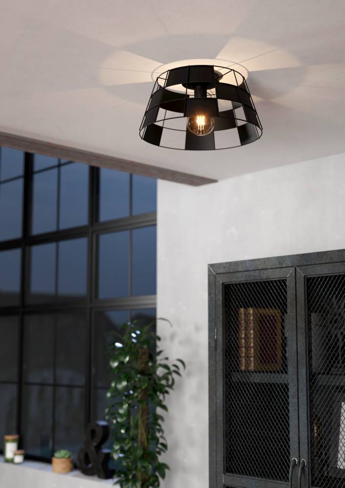 EGLO Pontefract Plafondlamp - E27 - Ø 42 cm - Zwart - Staal