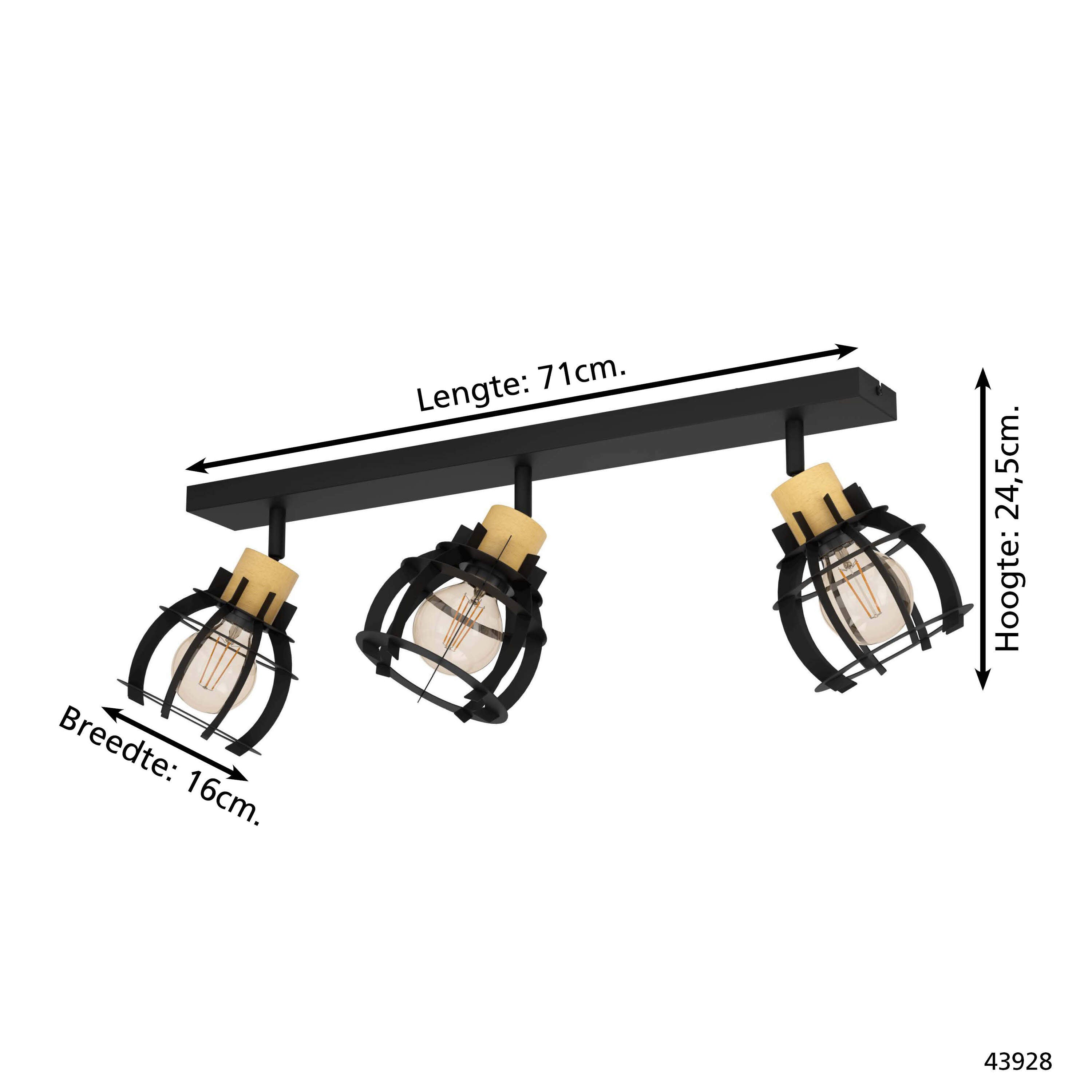 EGLO Stillington 1 Spot - E27 - 71 cm - Zwart|Bruin - Hout|Staal