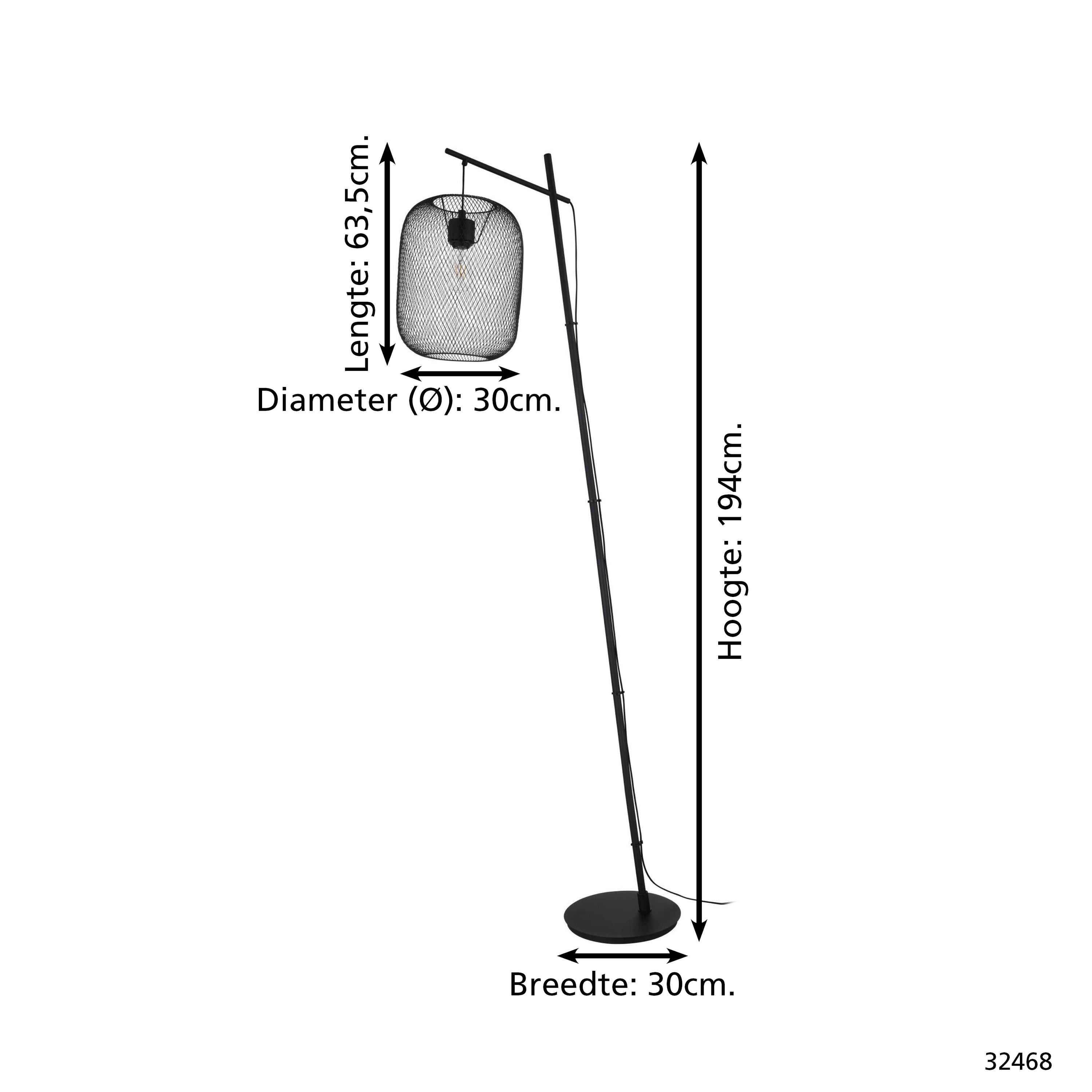 EGLO Wrington Vloerlamp - E27 - 194 cm - Zwart